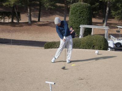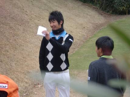 早朝は、グリーンは勿論のこと、周辺までもが凍っている程の寒さでした。この寒さの中、参加した生徒は、皆苦戦しました。