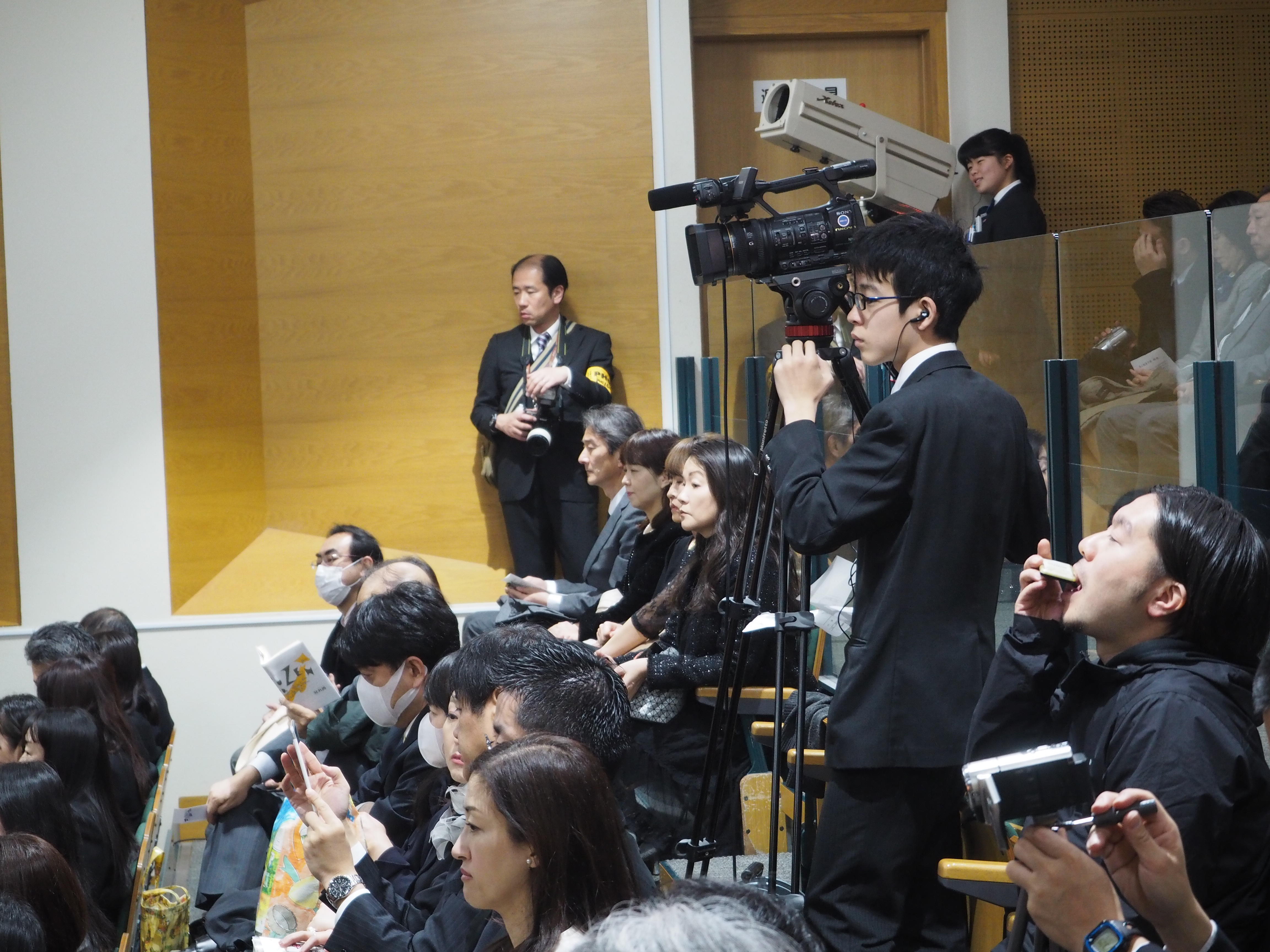 卒業証書授与の様子を右端のIBS局員が撮影しています。