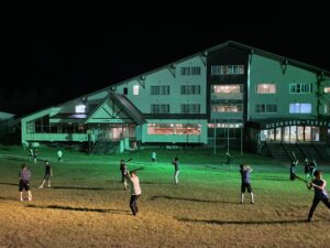 ご飯が本当に美味しく、部員たちは何杯もおかわりをしていました。宿泊したロッジがスキーゲレンデの麓にあり、夜はナイター用の照明をつけていただきました。また星空が綺麗で、流れ星をみた部員もいました。またレクリエーションを通じて、お互いの新しい一面を知ることができました。特に先輩後輩の親睦が深まりました。