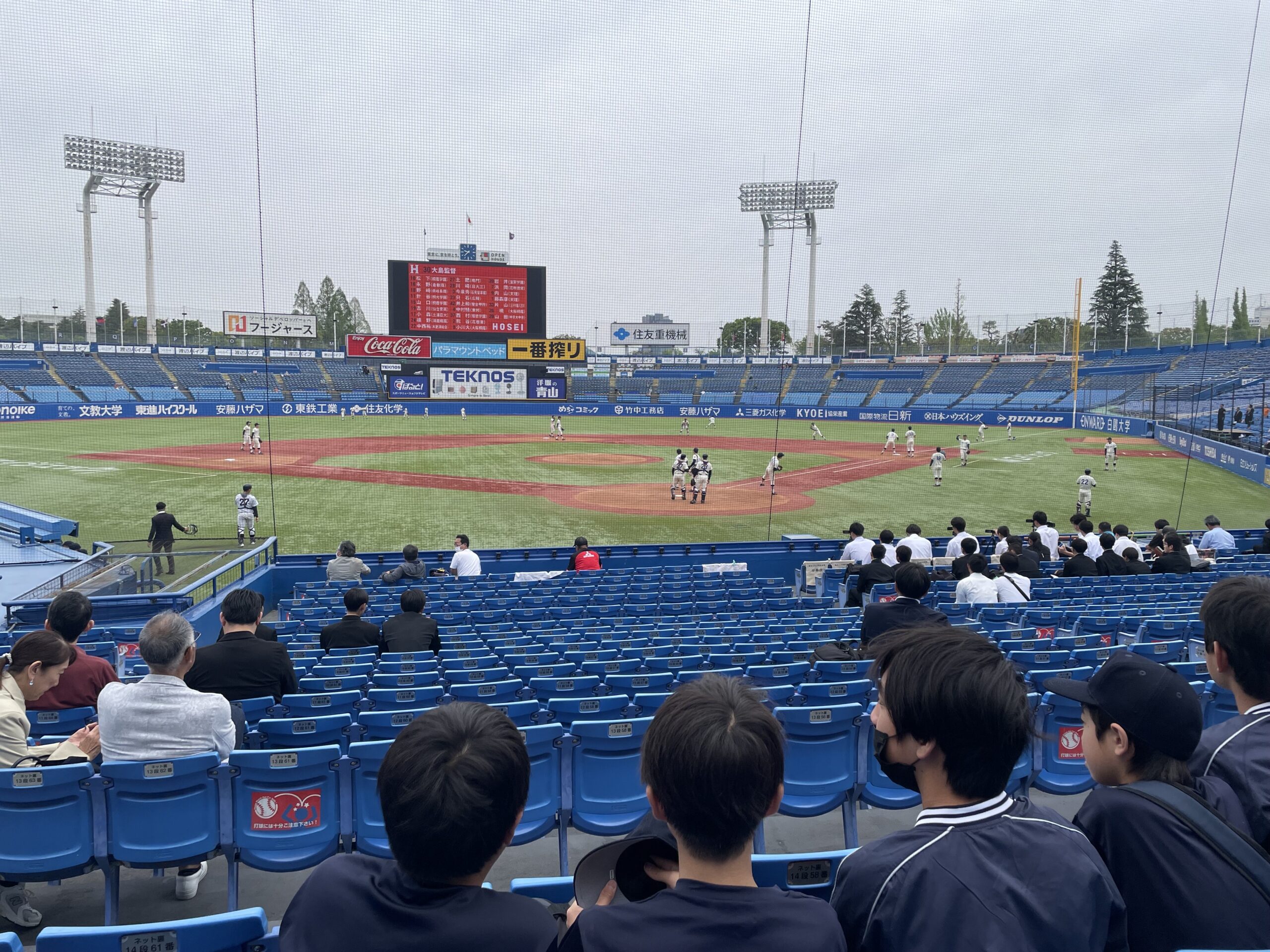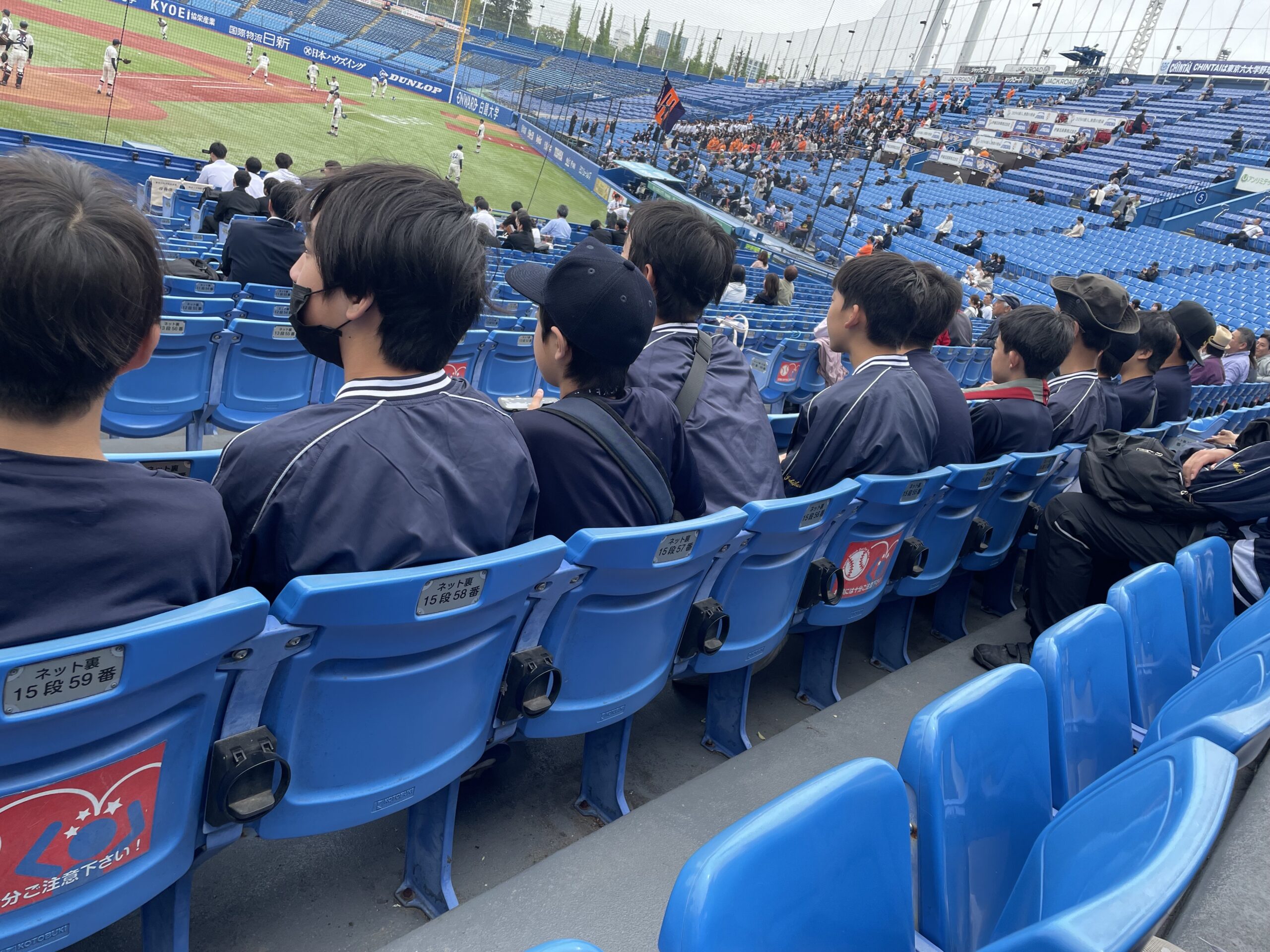 試合は3本のホームランが飛び出すなど、大学生のすごさを間近で感じることができました。バックネット裏という特等席で一人一人が目的を持って試合を観戦し、「なんであのポジショニングなんだろう」「ここは振ってもいいカウントかな?」など、様々な疑問を共有し合っていました。