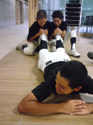 グラウンドが取れない際には、このような筋トレと走り込みを行っております。