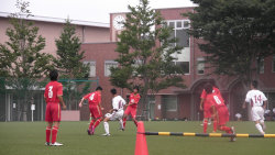 ここ数日、3年生だけで練習試合をしたりと、チームを作り上げてきました。出だしは今一歩となりましたが、段々と調子も上がり、19分、サイドバックからのロングパスにフォワードがあわせ1点先制!