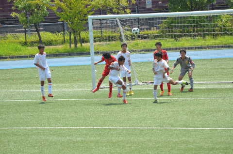 後半開始2分、左コーナーキックからのセットプレーのチャンスを得ます。これをヘディングで押し込んだかに見えたものの、惜しくも枠を外します。