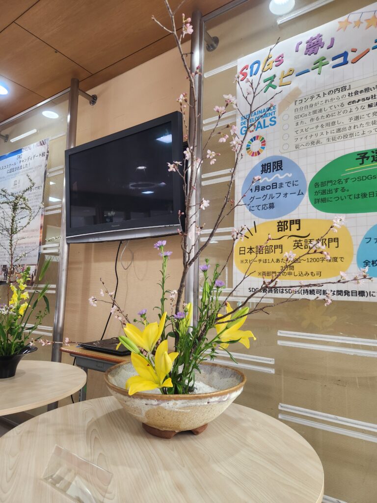 部長が個人留学のため最後の生け花となりました。