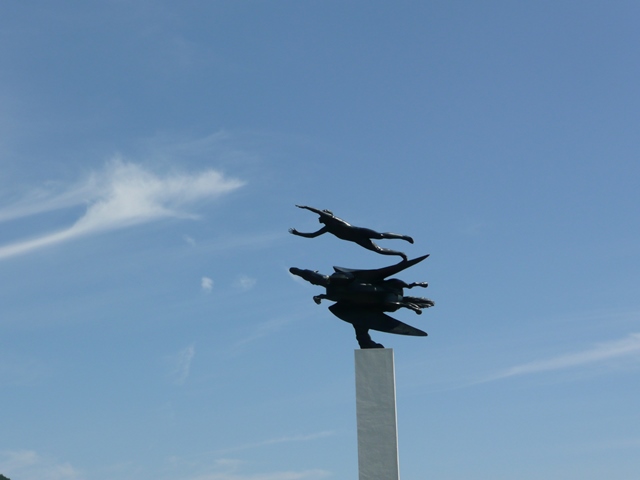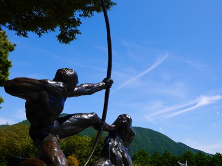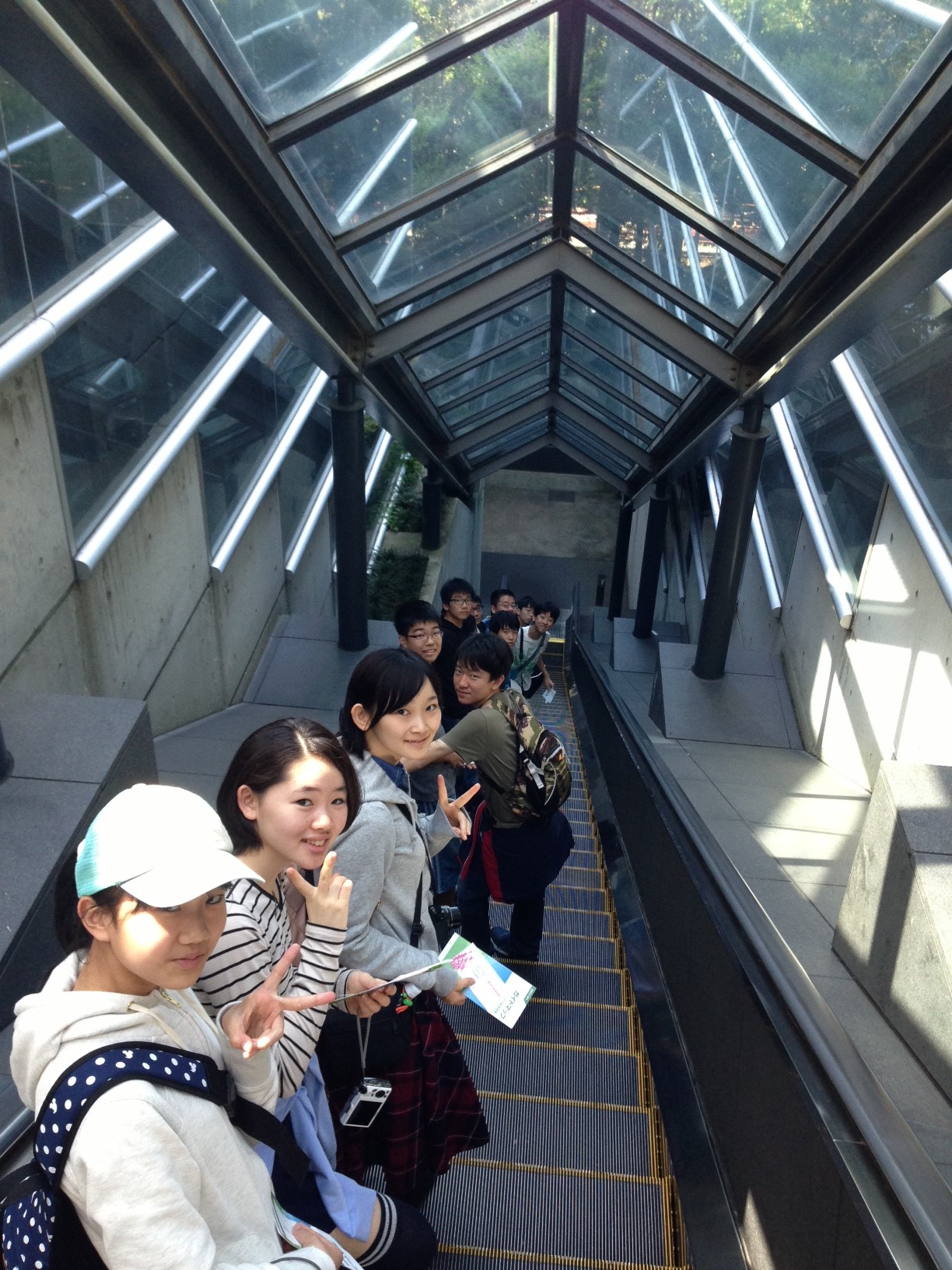 屋外に個性的な彫刻が並んでいて、部員たちは夢中でシャッターを切っていました。