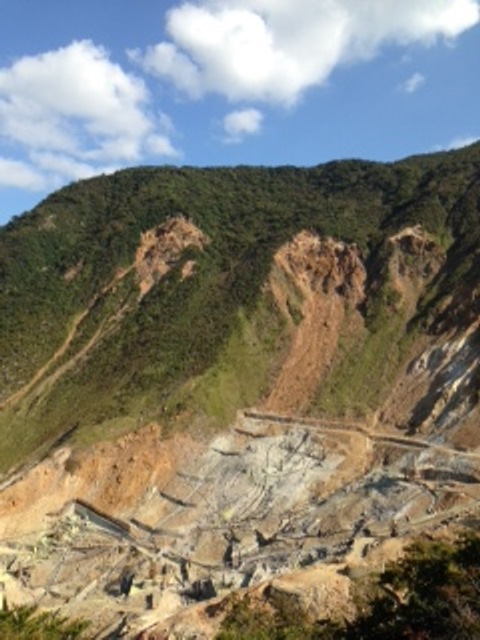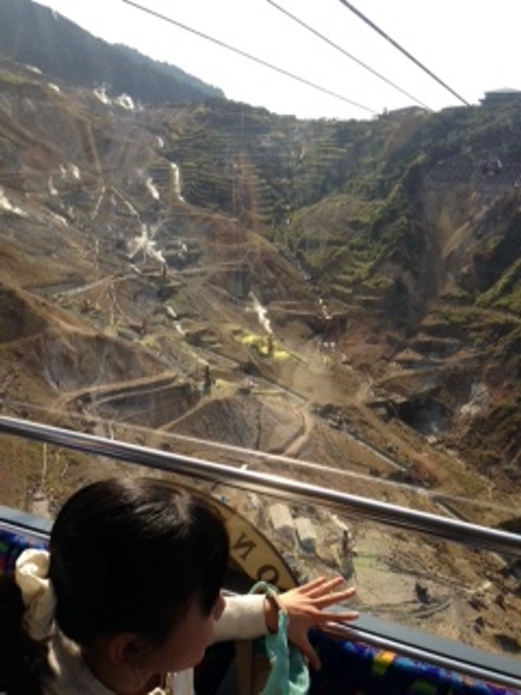 その後、ロープウェイに乗り、大涌谷へ向かいました。ロープウェイからの絶景に生徒たちも感動しながら撮影していました。