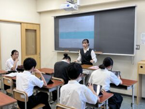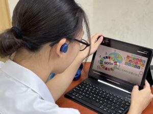 (写真は、参加作品を視聴するSDGs委員会の生徒たち)