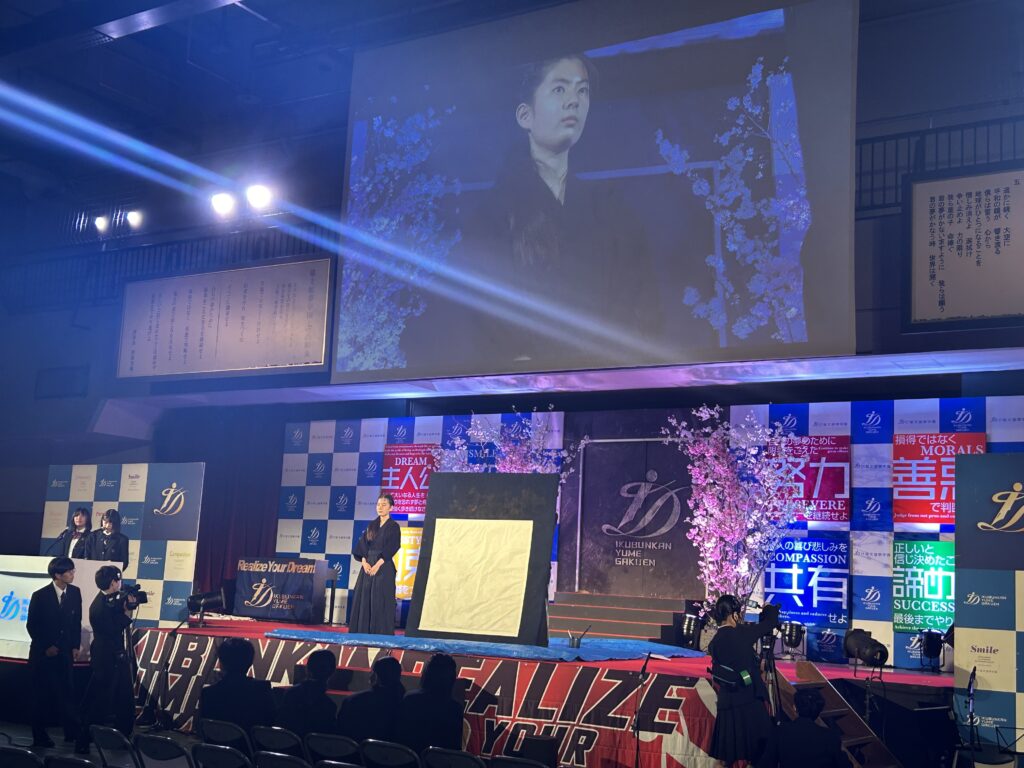 中学・高校・グローバル高校・ID学園の入学式が行われます。その式の中で、理事長が考えた「今年の漢字」の一文字を書道部が舞台上で揮毫し披露する晴の舞台であります。