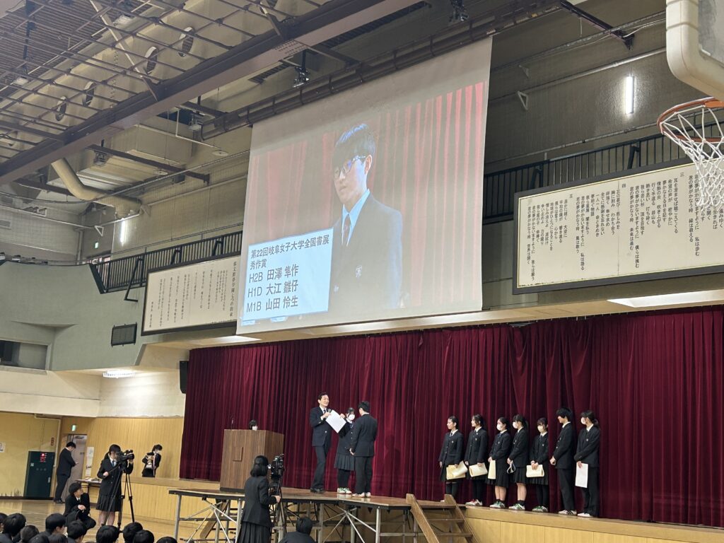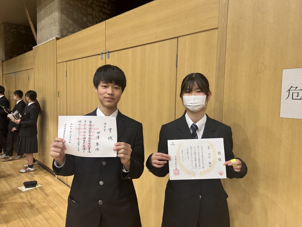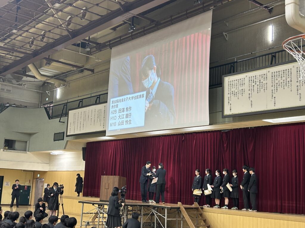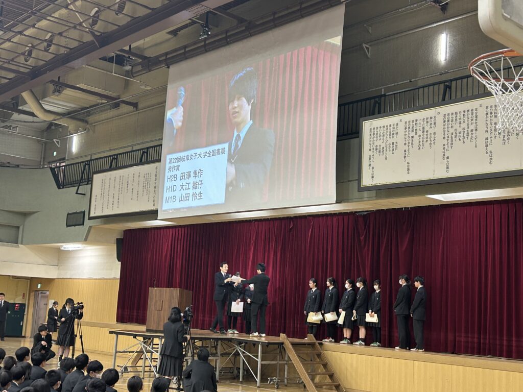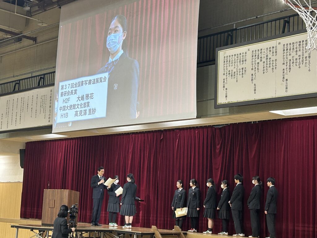 始業式にて今回も書道部員たちが昨年に出品した様々な展覧会での結果が出て、沢山の受賞者が表彰されました。