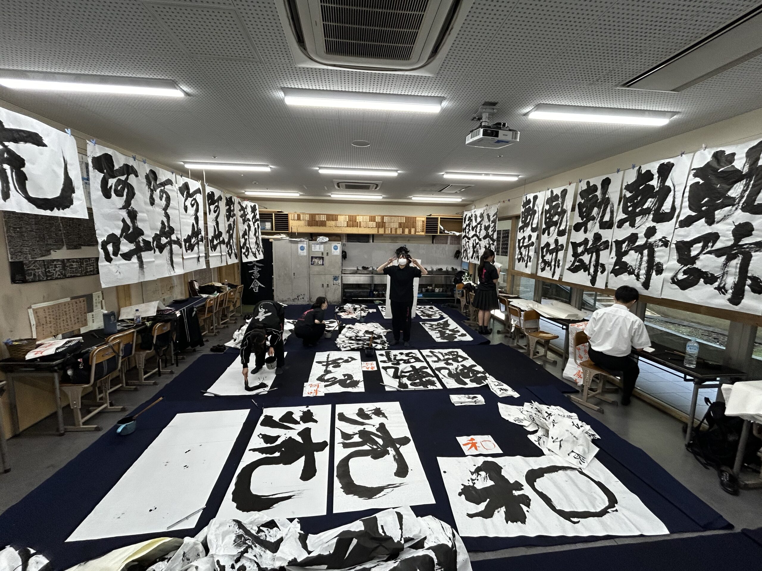 各自で事前に何の作品を書くのか決めていたこともあり、どんどん書き込んでいくわけですが、高文連に出品する作品に関しては、掛け軸に仕立てる都合上、展覧会の会期よりも1ヵ月くらい前には業者さんへお渡ししなければならず、最優先で取り組んでおりました。