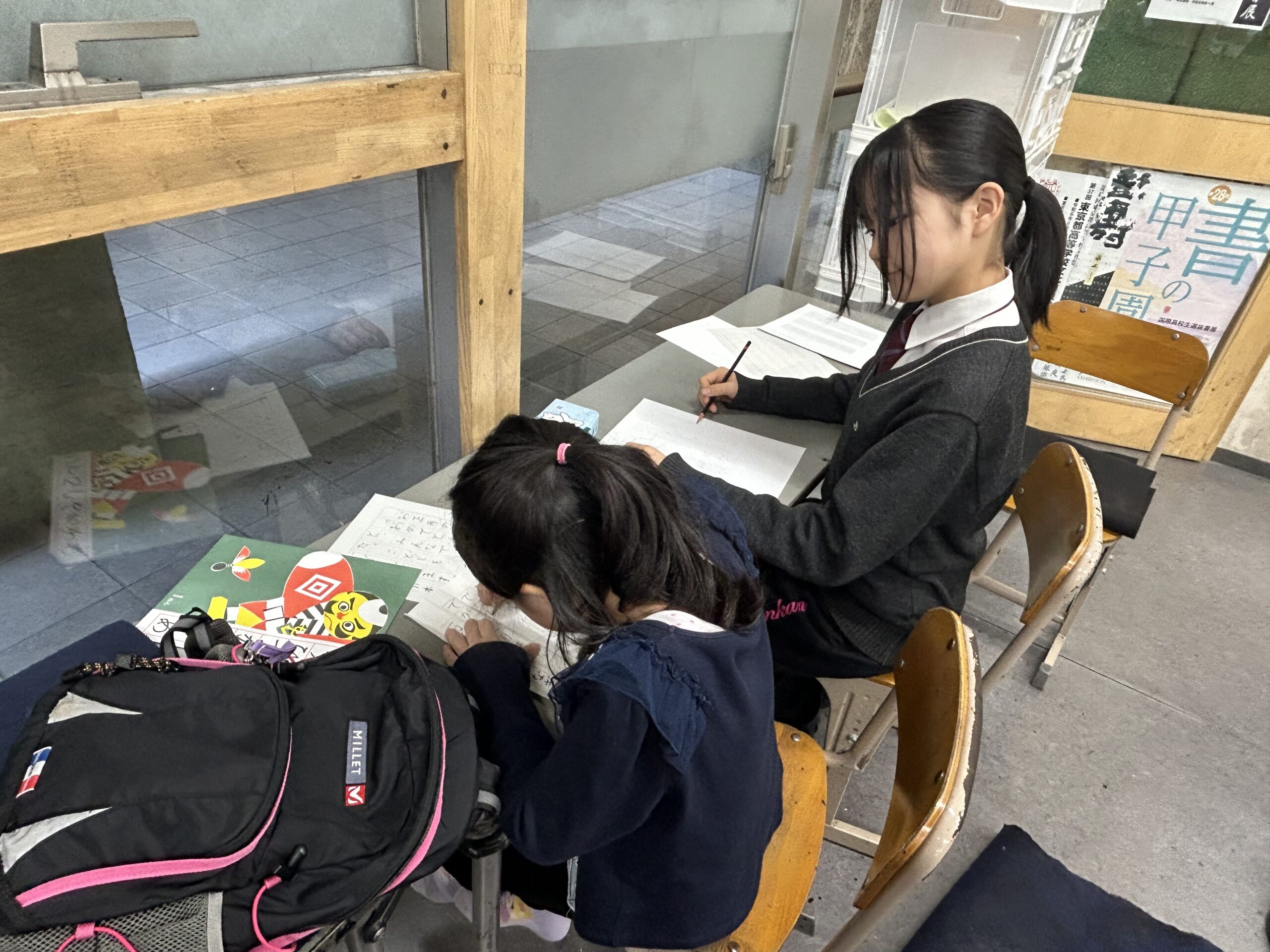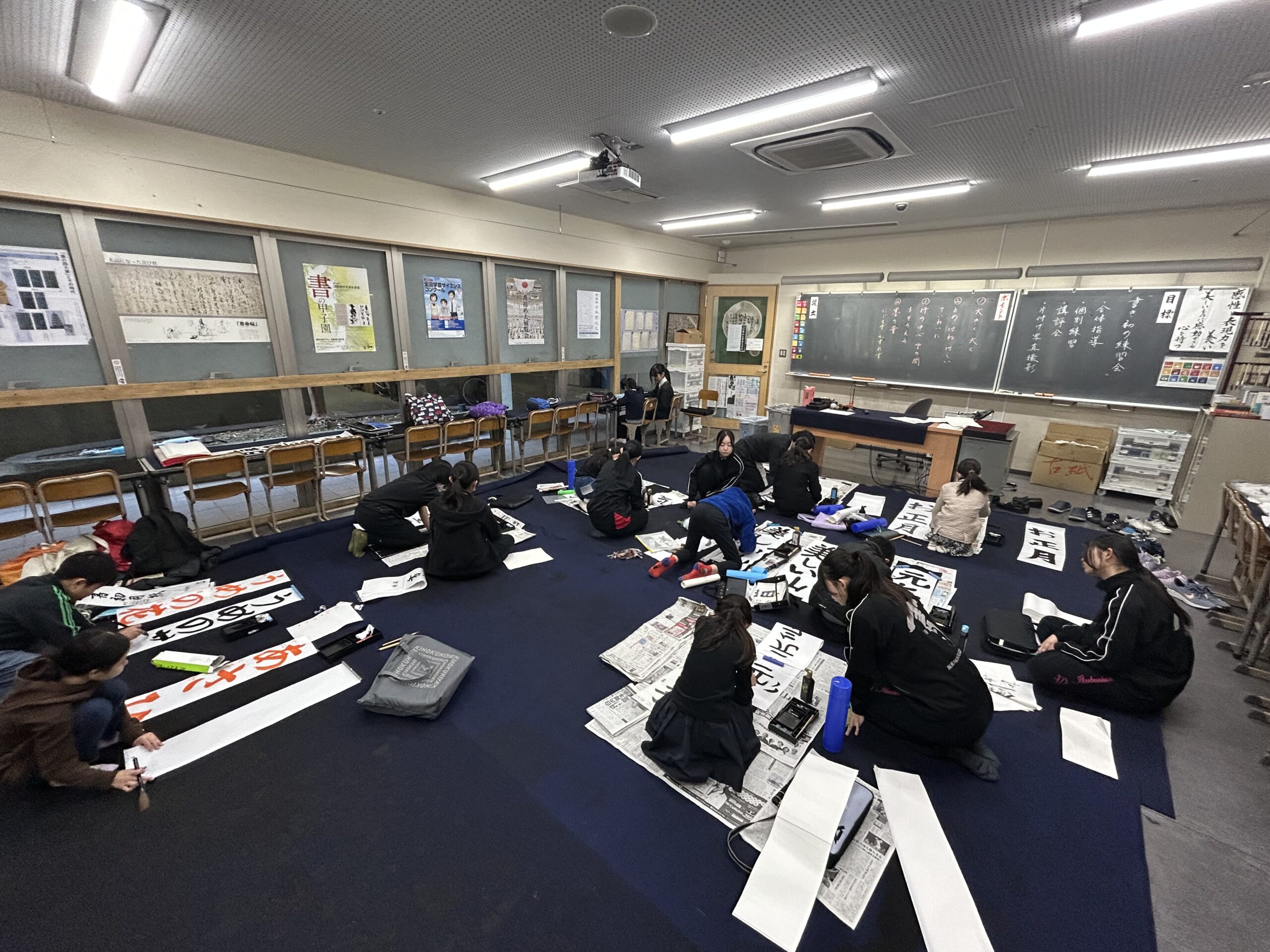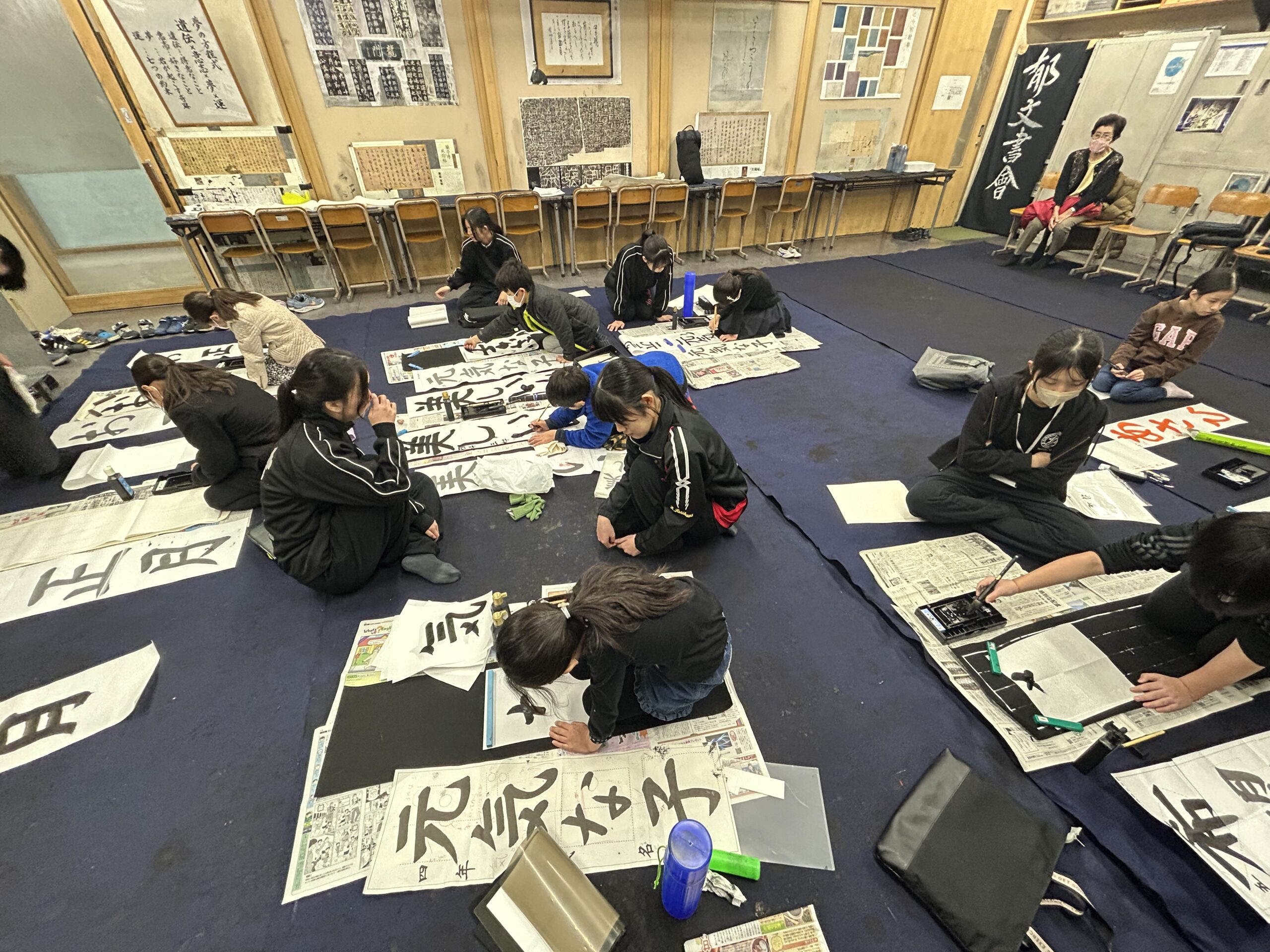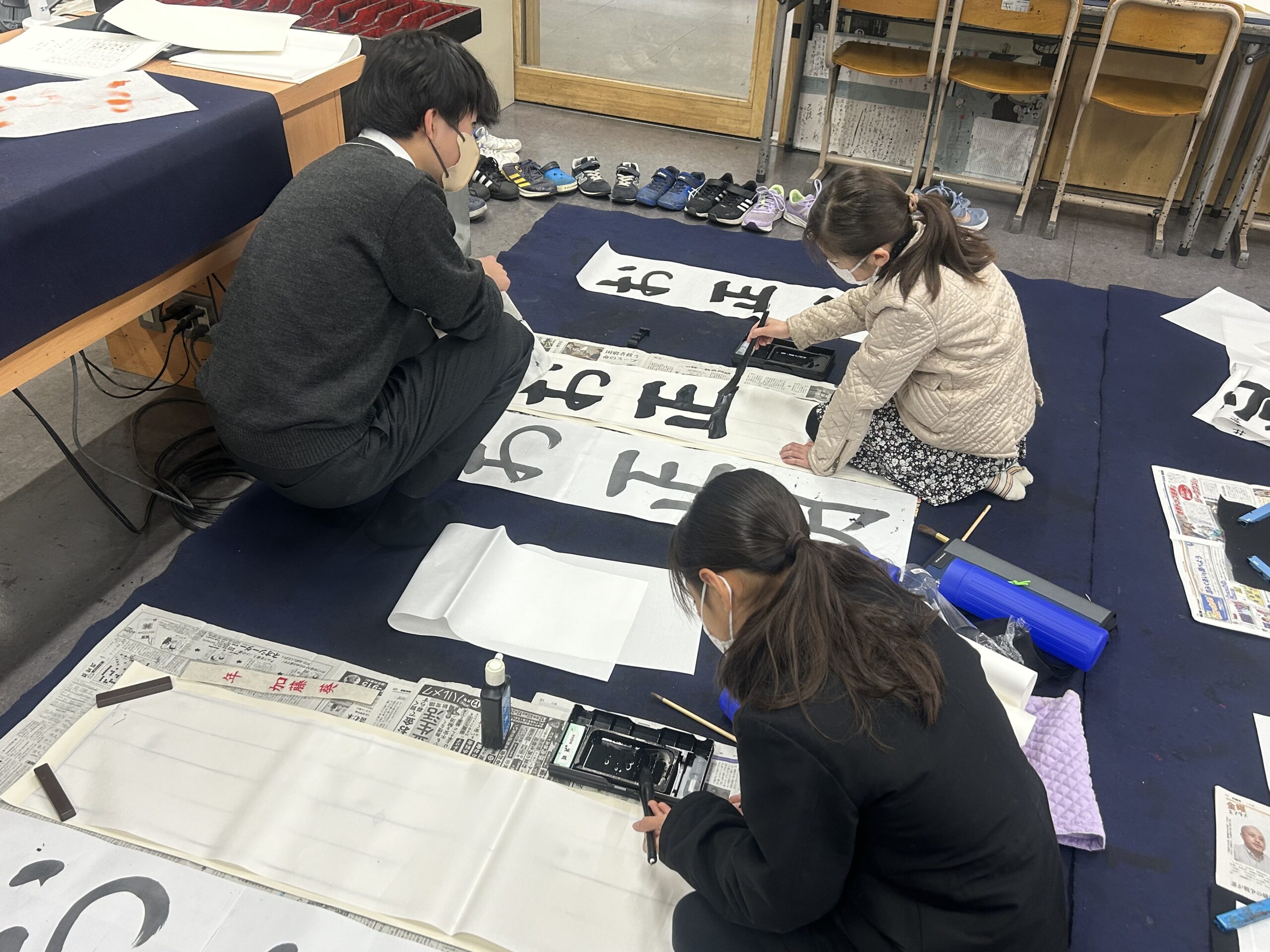 さて、書道部では、毎年の恒例行事となっている郁文館のある町内会の「蓬莱町」に住む小中学生を対象とした書き初め練習会を今年も開催する運びとなりました。