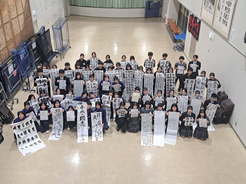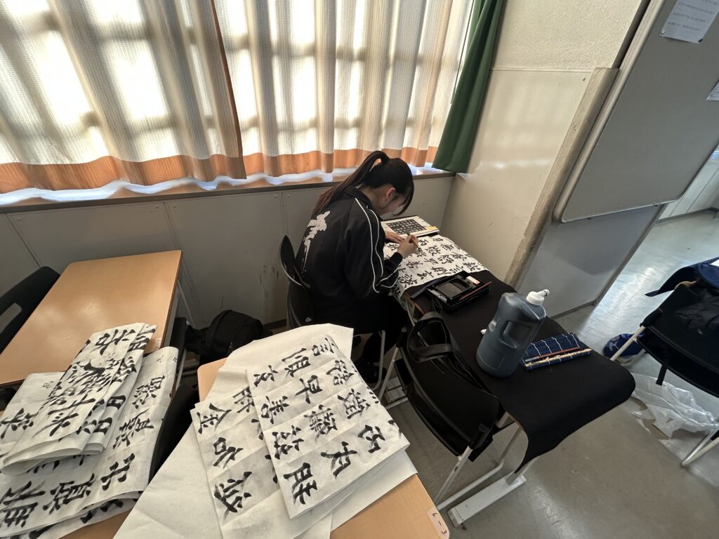 場所は、板橋区にある大東文化大学第一高等学校の書道室といくつかの教室をお借りし、作品の練習、制作、発表、講評会という一日がかりのスケジュールで行われました。