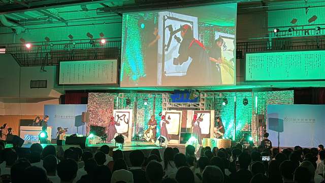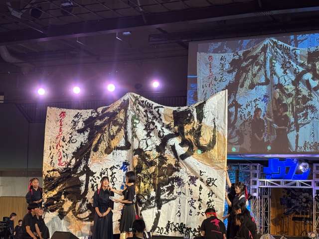 当日は大勢の来場者が書道部の作品展で作品の鑑賞や書道体験、「今年の漢字予想」や「うちわのくじ引き」などの企画を楽しんでいただき、また地下での書道パフォーマンスを見に来て下さり感動を与えることができたと思います。
