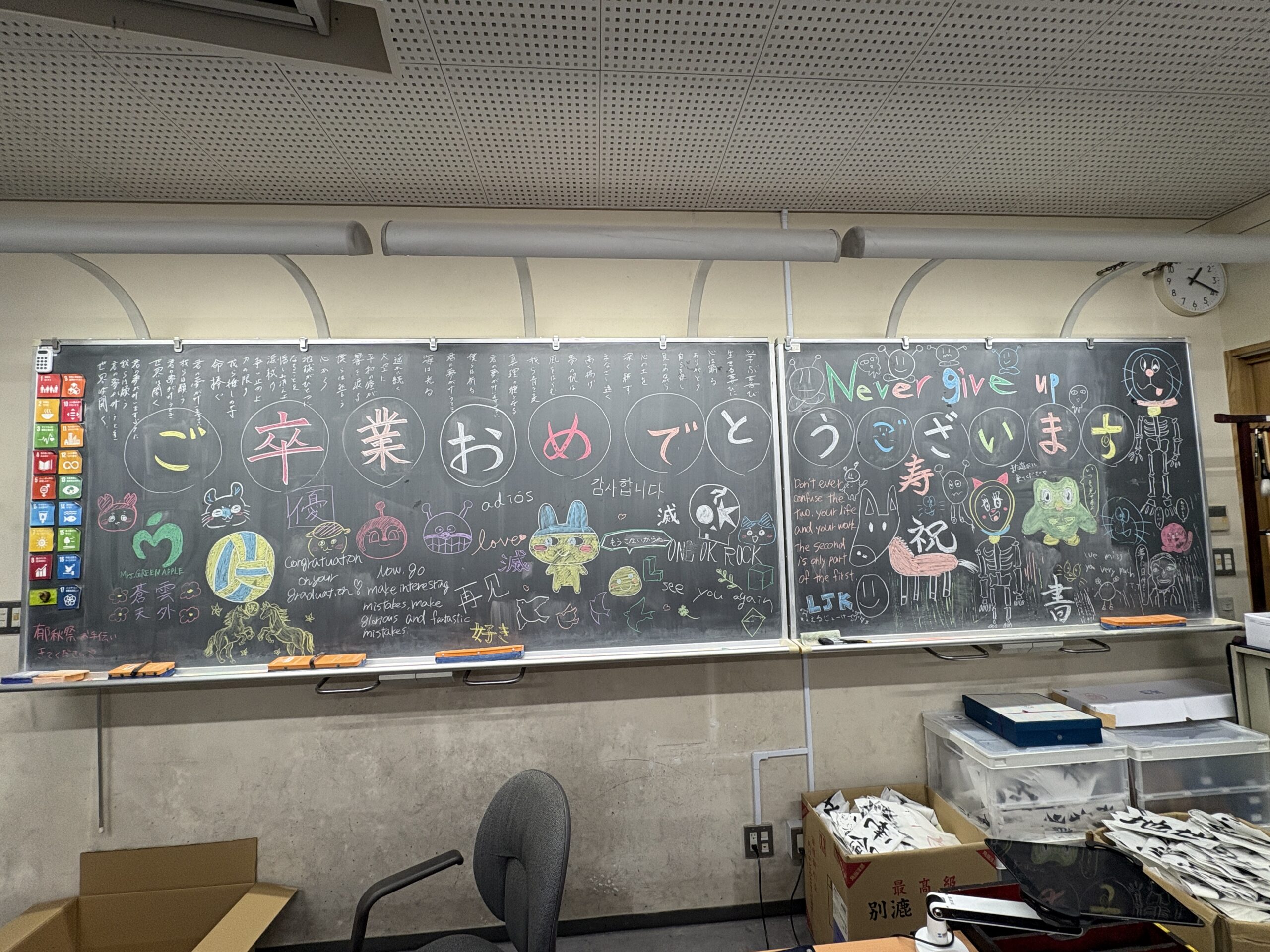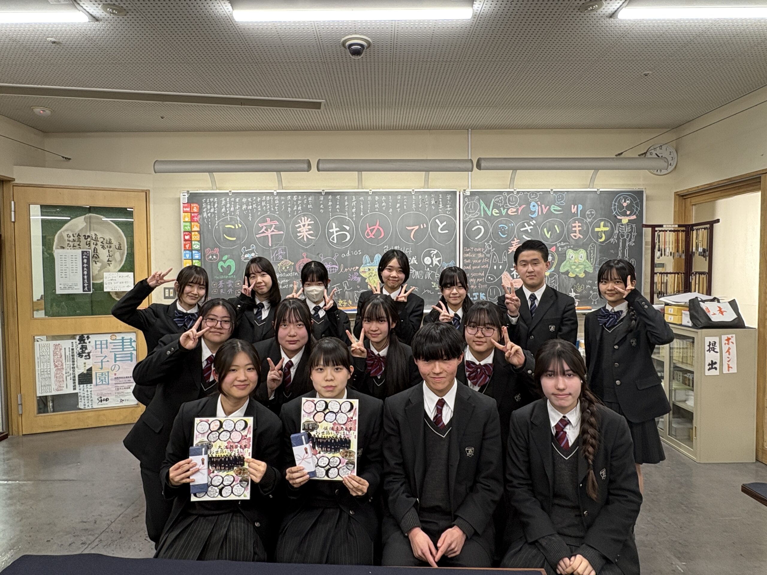 長く見ていた子たちが巣立っていくのは寂しいものですが、これからはOBOGとなります。いつでも書道部に遊びに来て下さいね!
