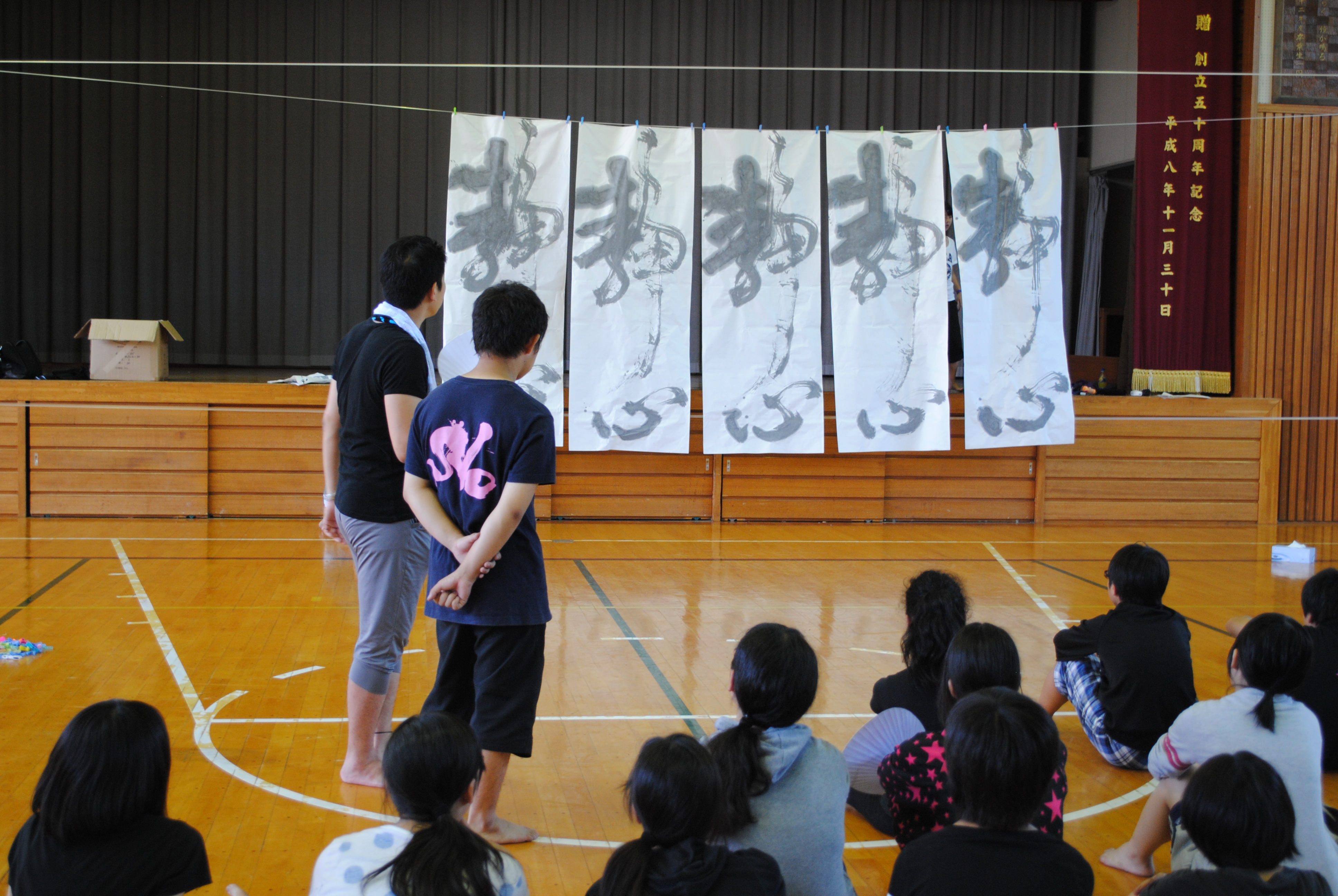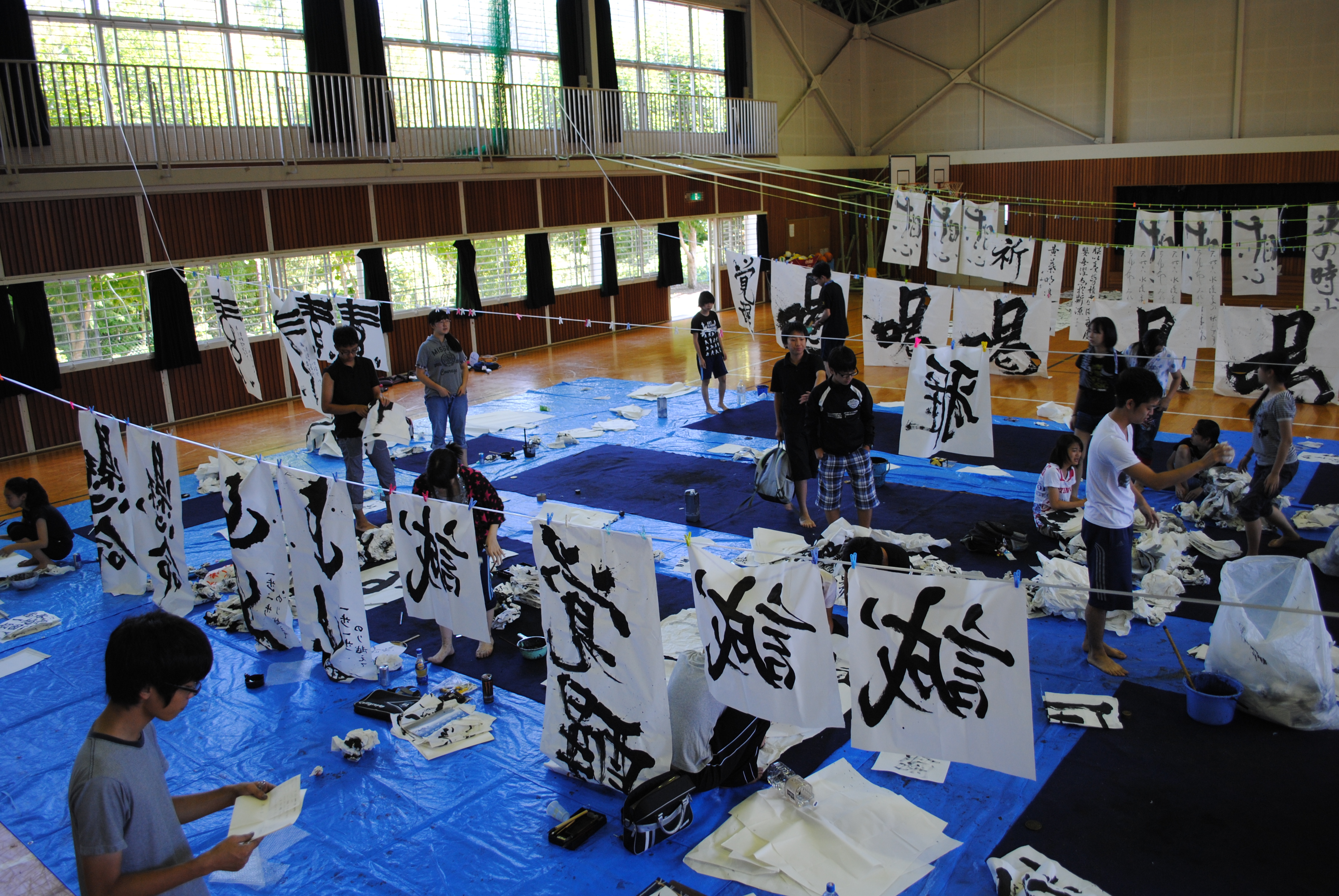 学校の書道室では書けない大きな作品をどんどん仕上げていきます。
