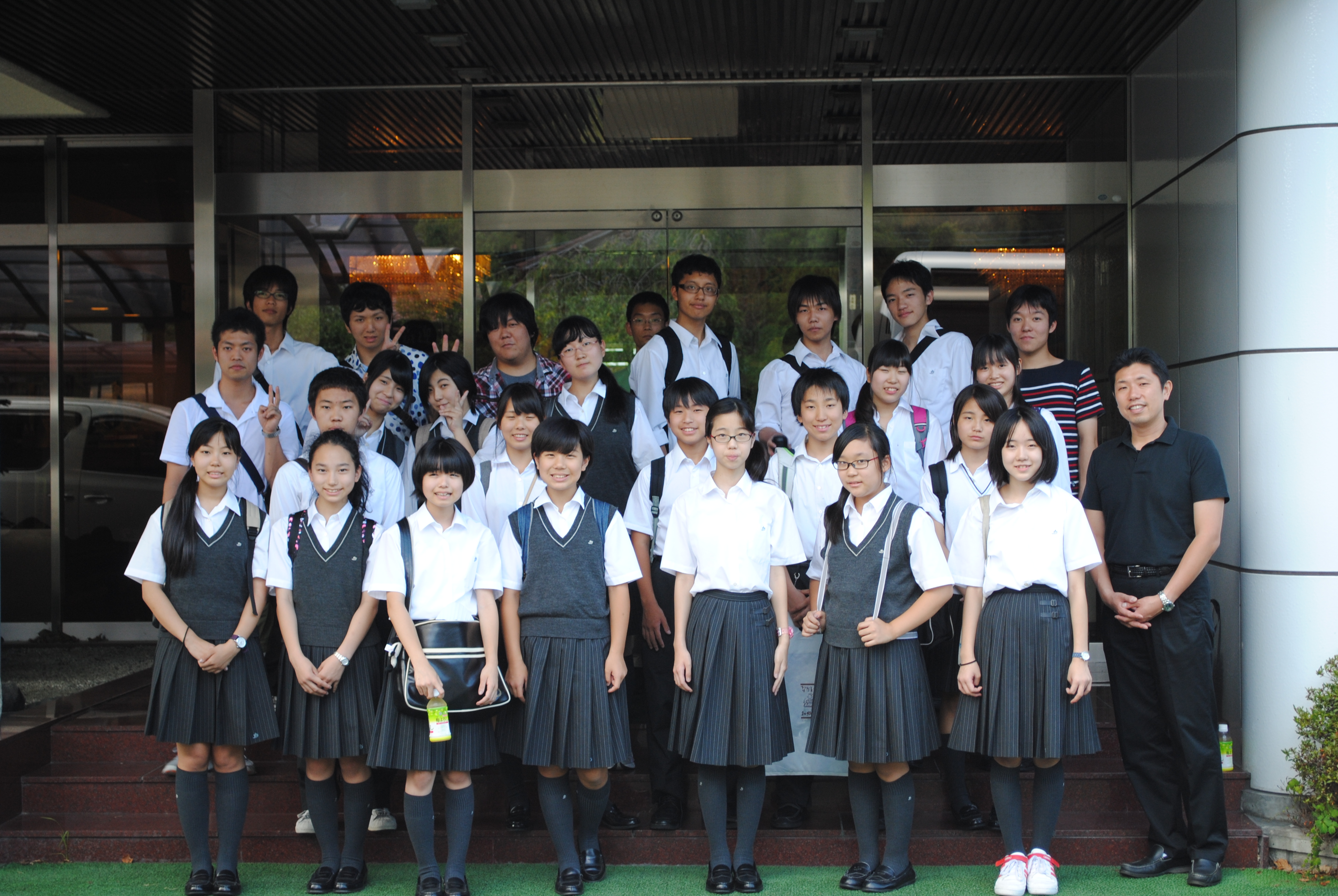 最後は、ホテルの前での記念撮影です。来るときより少しは上達したかな。みんな良い表情をしています。