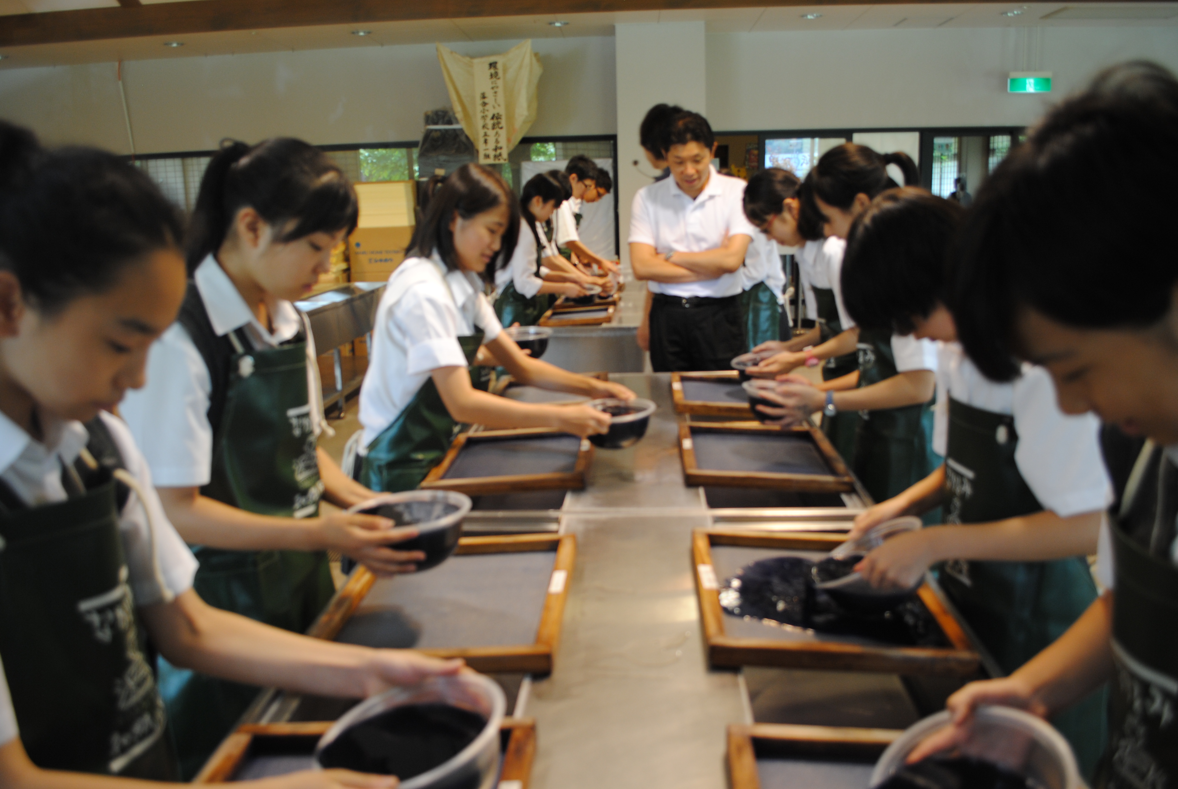 合宿先の山梨県は製紙が盛んな町です。そこで初日は「紙漉き」体験を行いました。