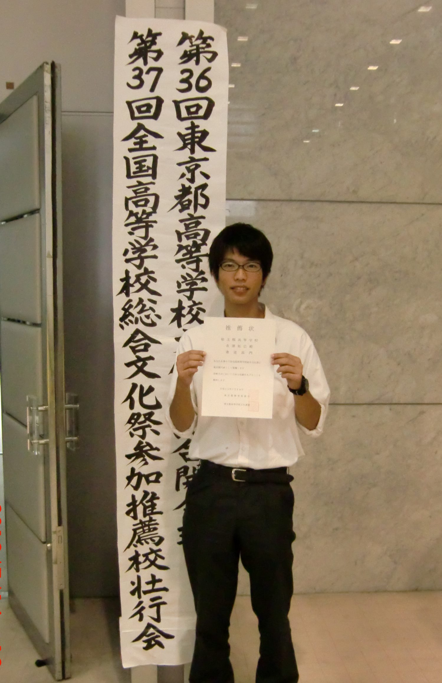 7月14日(日)東京都の書道部門代表として全国大会に参加する生徒に対し、壮行会が行われました。