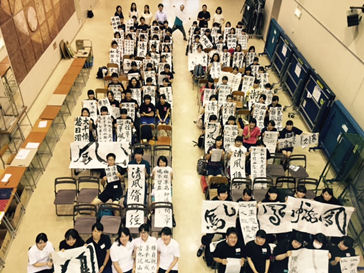 指定された臨書作品と創作の作品を仕上げましたが、本校は創作の中でも大字(特に1字書)が得意であり、これに関しては他校に負けない作品を披露することができました。