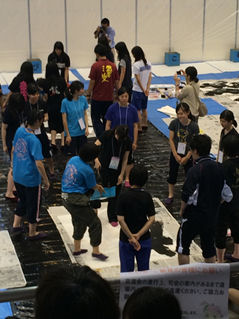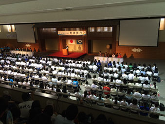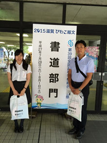 場所は滋賀県立武道館。ここに高等学校書道展で東京都代表生徒になった書道部部長の青木日和(高校3年)が、顧問の東海林剛教諭引率の元、参加してきました。