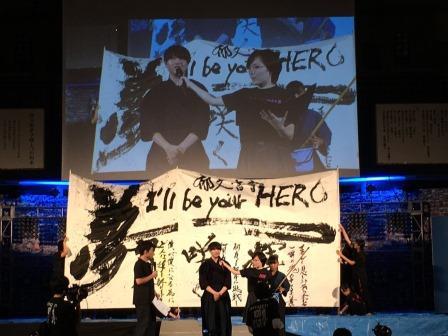 今年の席上揮毫パフォーマンスは安室奈美恵さんの『ヒーロー』に合わせて、夢をテーマに作品を書き上げました。