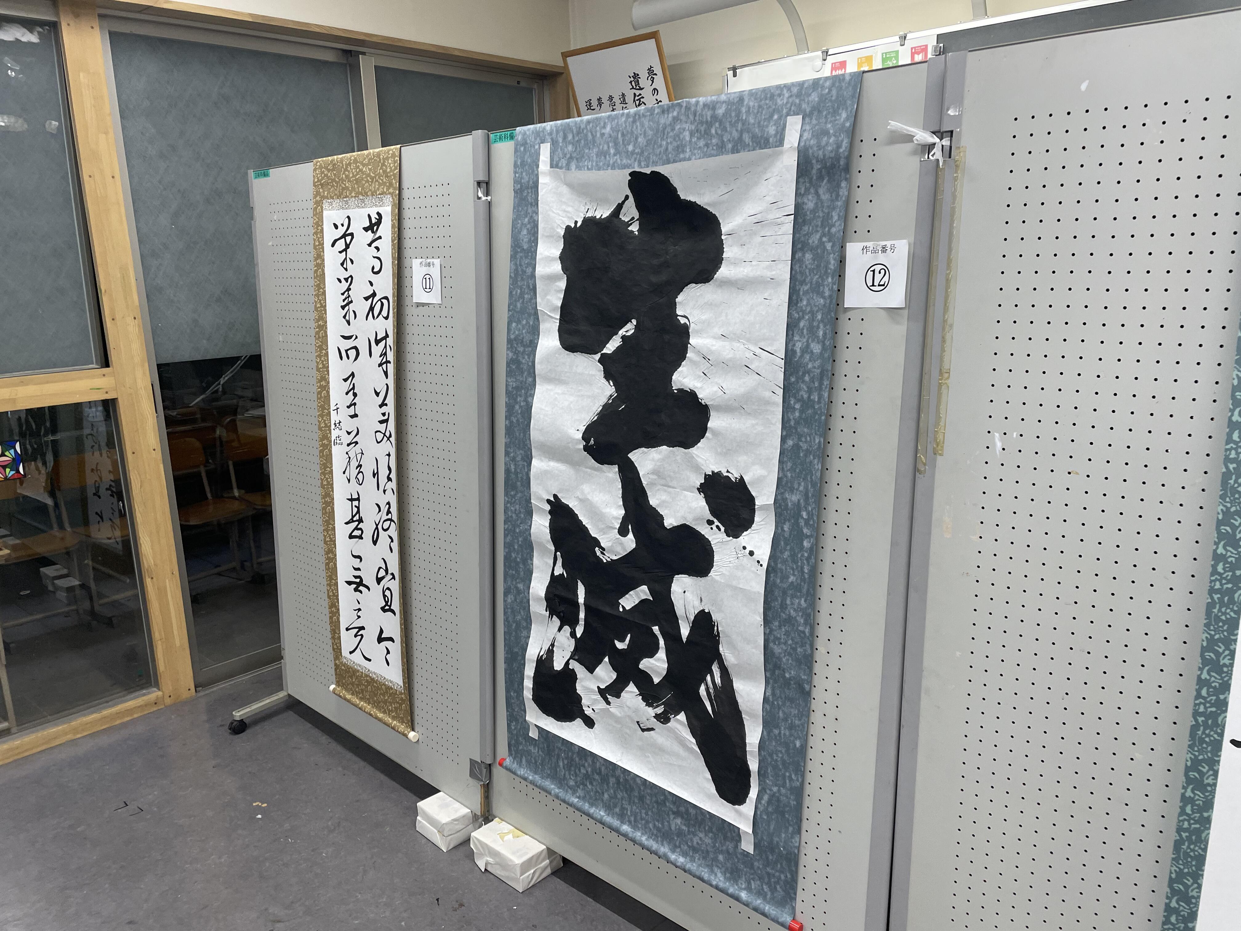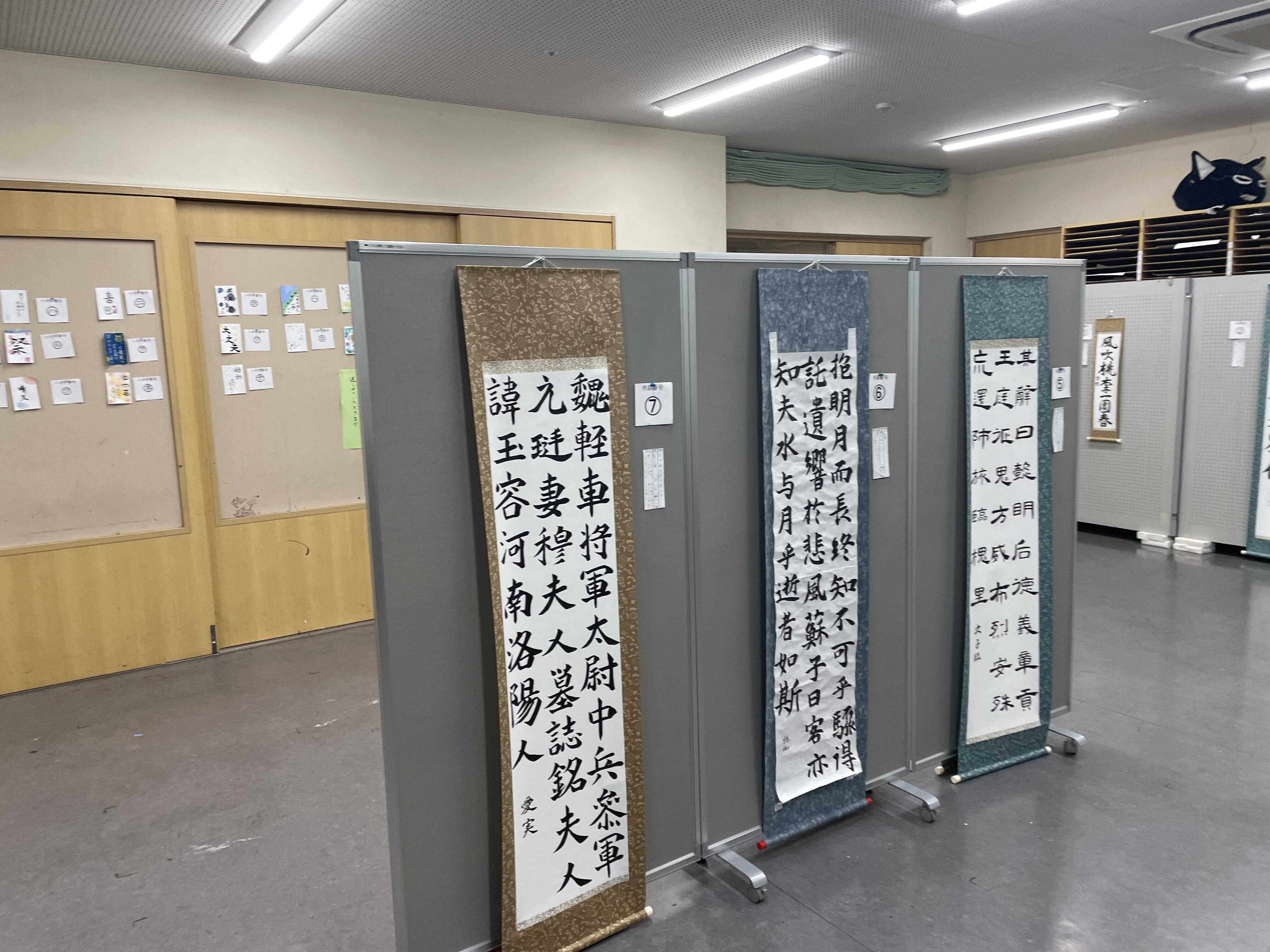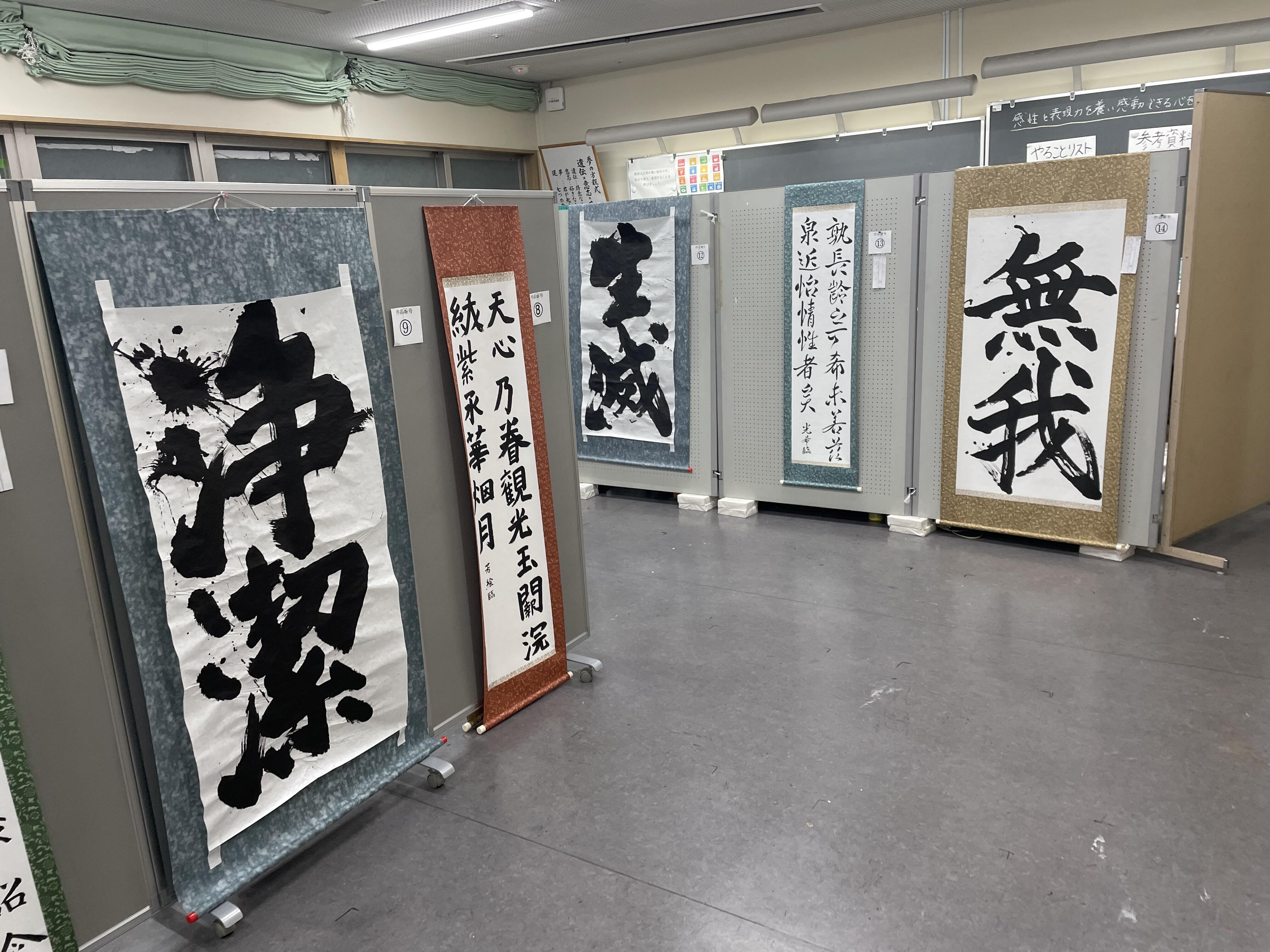 展示会場では2か月間という短い製作期間で仕上げた渾身の書作品の展示以外に、ハガキに部員各々がデザインを施した「オリジナルハガキ」に対し人気投票を行い、自分に入れてくれた方にプレゼントをする特別企画も実施し、盛況のうちに幕を閉じました。