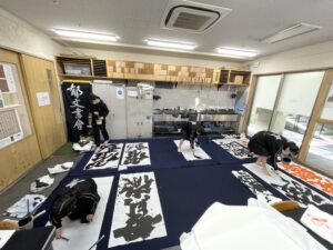 部員たちは最高位である「推薦段(十段)」を目指して頑張って書いています。