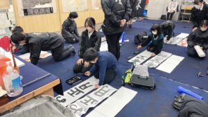 感染対策を徹底しながらという過去にない不自由な環境の中、参加してくれた小学生・中学生の皆さんに書道部員が一生懸命に教え、一緒になってより良い書き初め作品制作に取り組めました。
