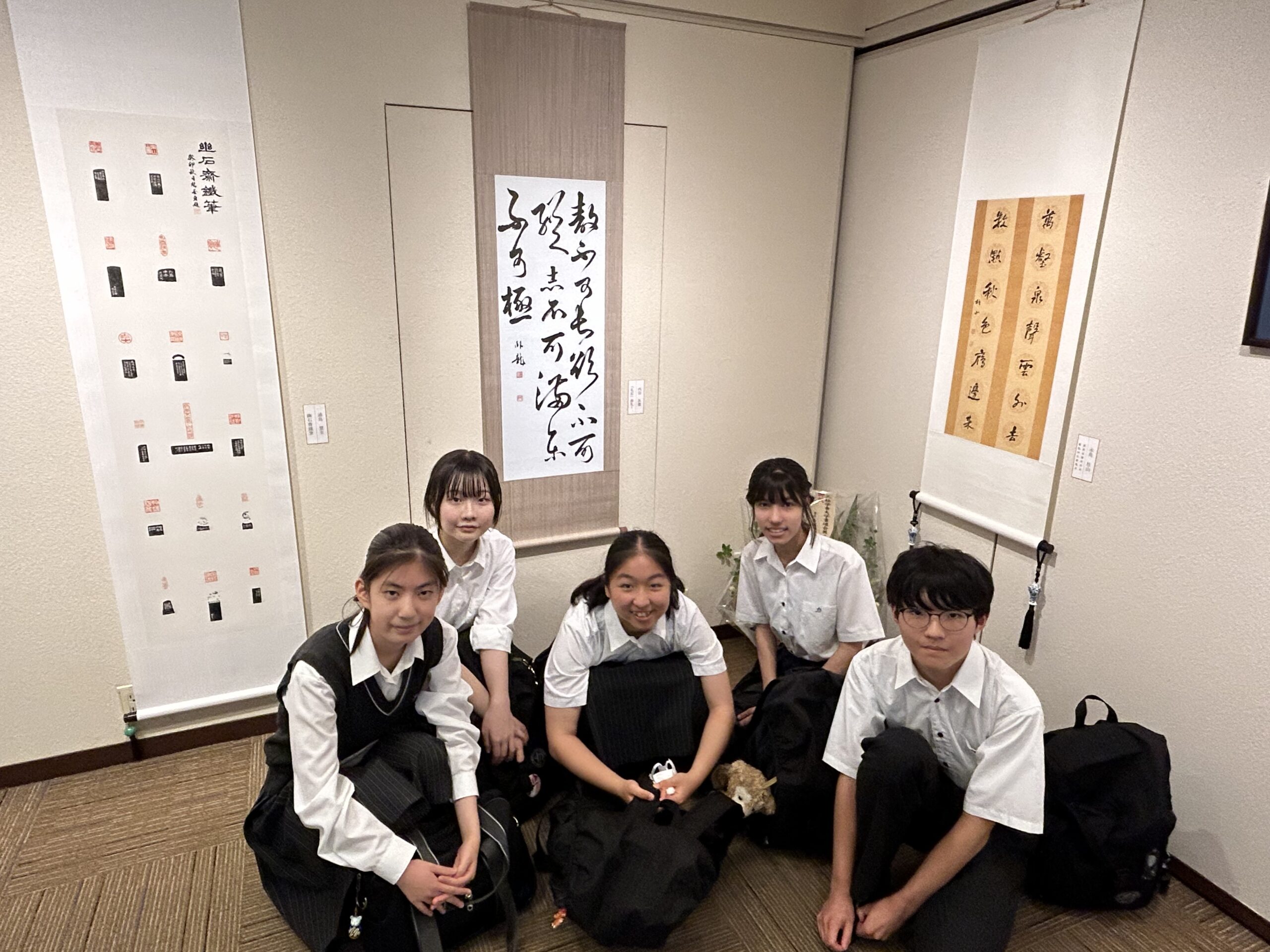 初日の天気は不安定で、なかなか人も来ないと思っていましたが、書道部の部員たちがみんなで会場へ足を運んでくれました!