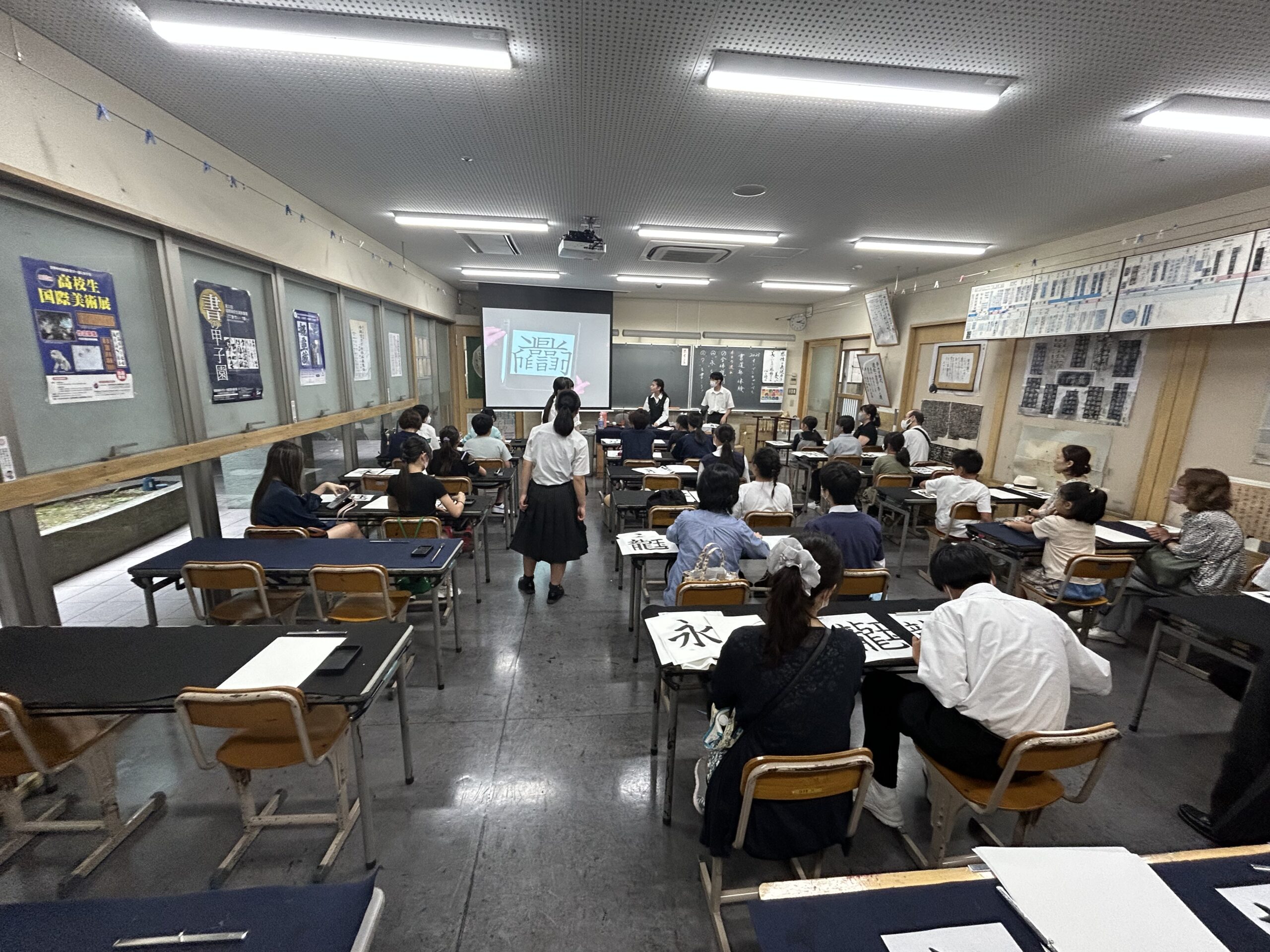 来場いただいた受験生とその保護者の方々と共に、書道部の活動の一部を体験していただくという趣旨の催しであります。