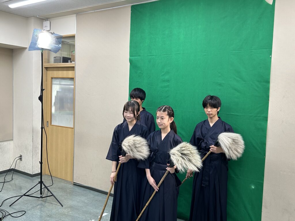 学園全体の郁秋祭ポスターの写真撮影の風景です。どこに使われるかは当日までのお楽しみに!