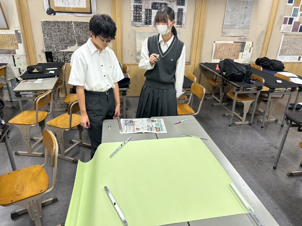 こちらは、学内ポスターの制作現場です。中学生も高校生も一緒に活動しながら作業をしたり親睦を深めていけるのが、中高一貫の部活のメリットですね!