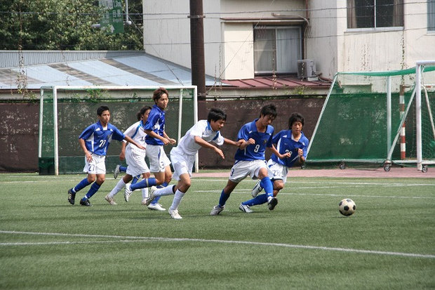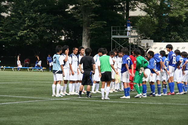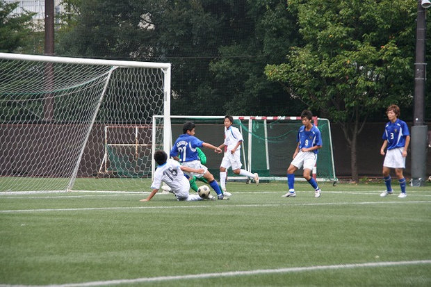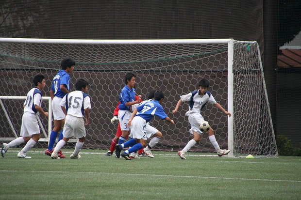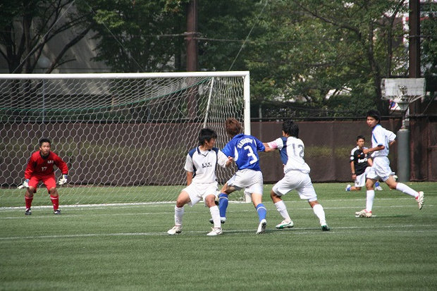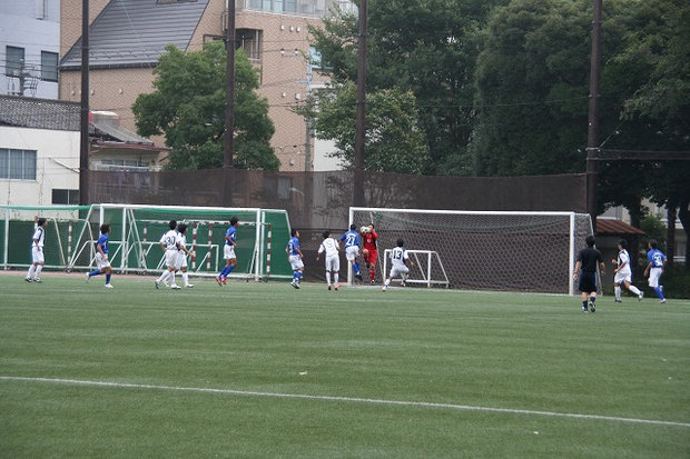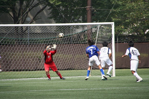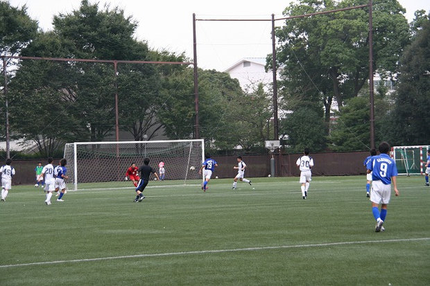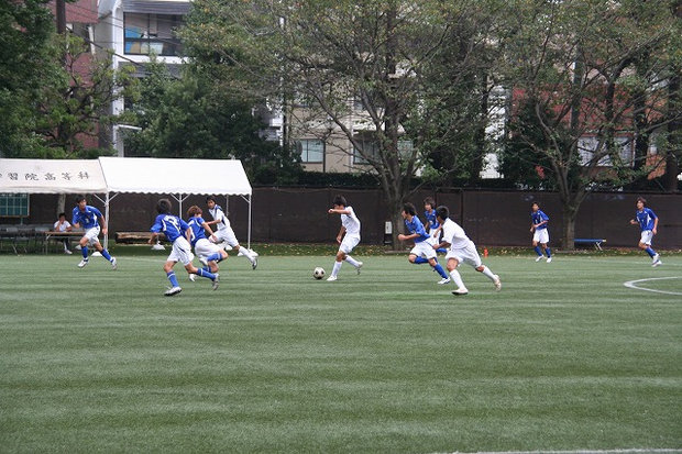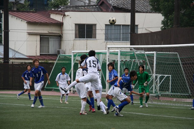 試合開始から学習院の中盤を省略し、縦へのロングフィードに自陣ゴール前まで攻め入れられる