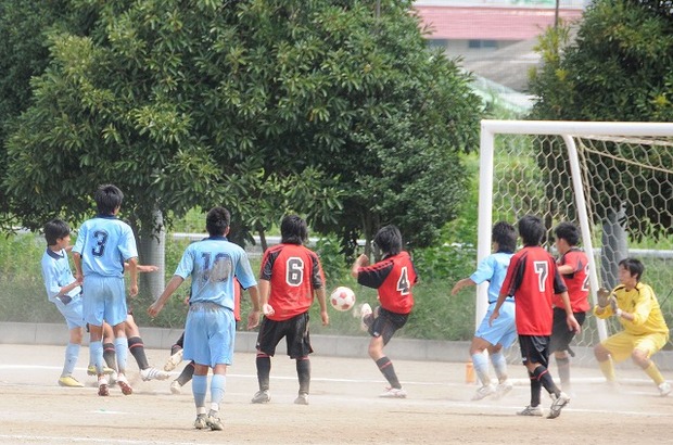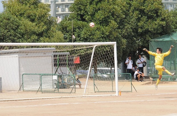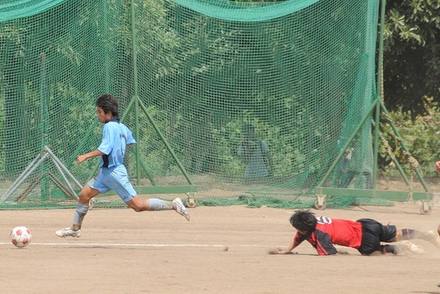 チャンスの後の危機。郁文館DFが体を張ってゴールを守る