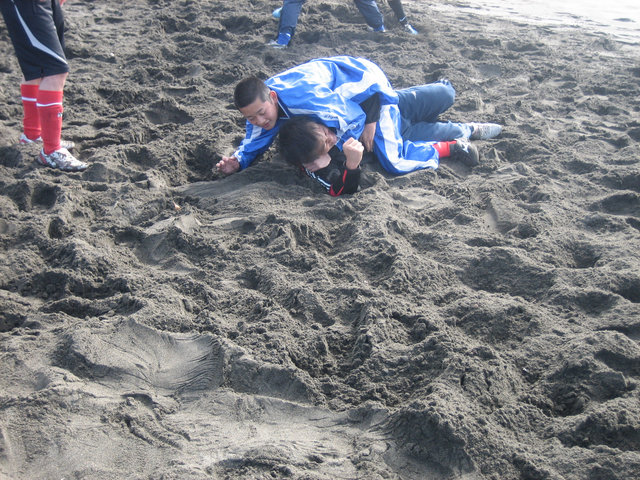 各クラブから一人ずつの3人組となり1対1のレスリング形式マッチ。背中を20秒押さえ込まれたら負け。普段グラウンドでは出来ないことで必死に闘ってました。