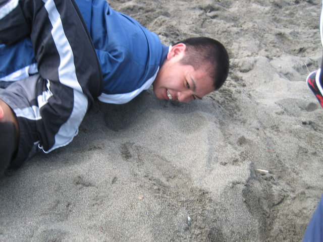 砂浜での手押し車は手首に負担が大きく「手首ちぎれる~」と思わず叫んでしまう生徒が。
