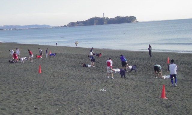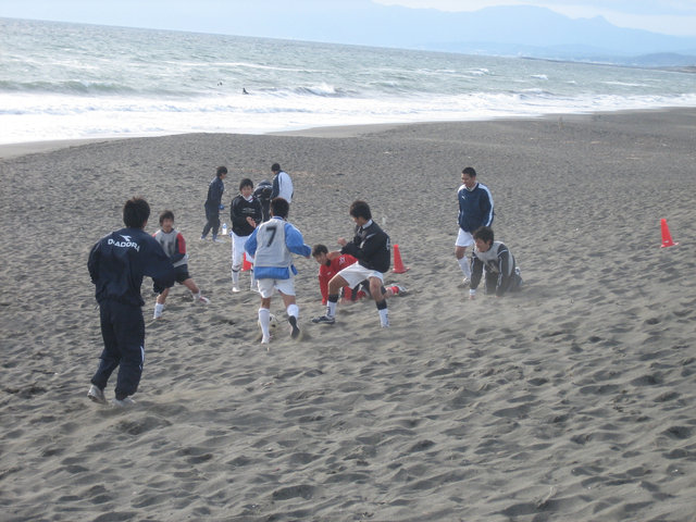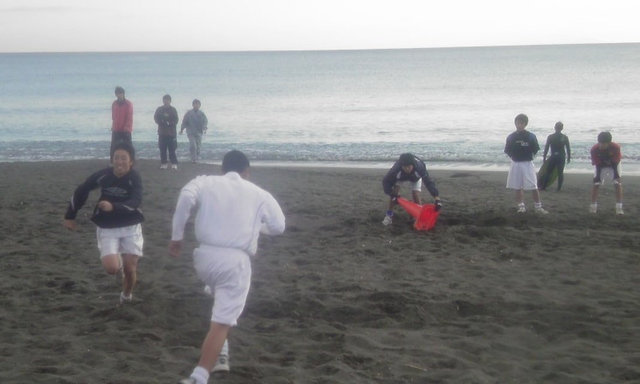1/5(水) 砂浜トレーニング2日目(郁文館・駒込・攻玉社の3クラブ合同)