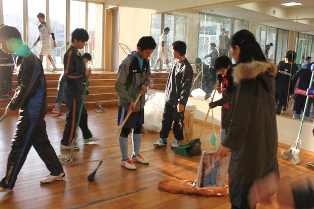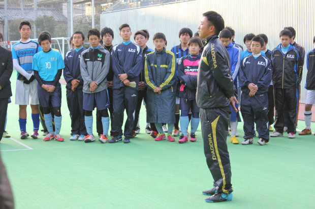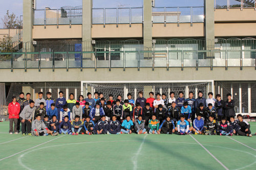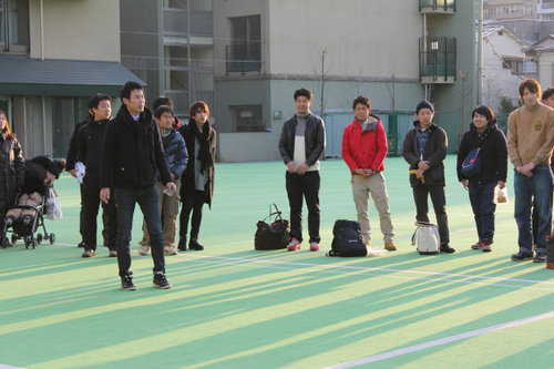 1月3日(金) 郁文館のグラウンドにサッカー部の先輩・現役・保護者が一同に集まって、初蹴りを行いました。