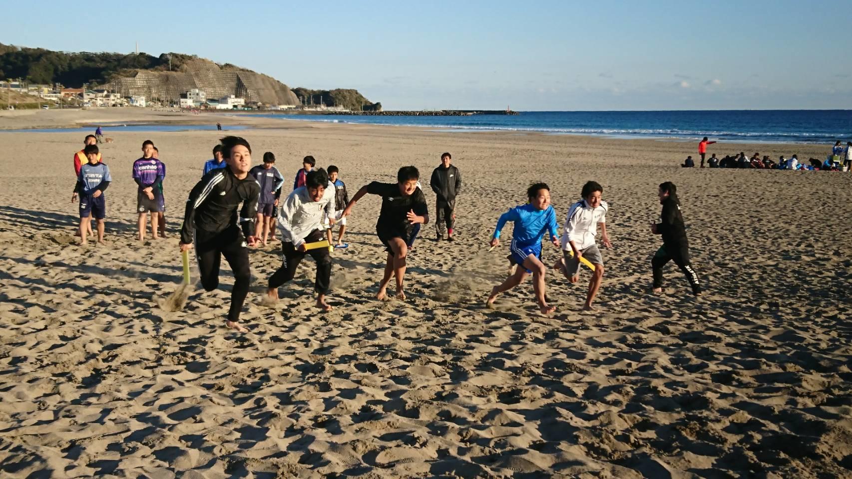 さて、選手は本日より陸上部と合同で、通称「浜トレ」合宿へ向かいました。とにかく浜辺を走り続けます! 皆様の応援に応えられるよう身体を作ります。そしてこの合宿で相互の親睦を図り、さらに強い絆のチームを作り上げていきたいと思います!!