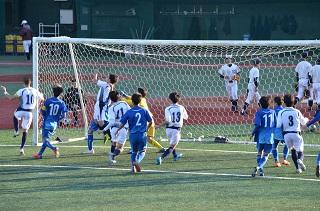 後半、人的優位にも拘わらず上手くボールが収まらない。コーナー・フリー・ドリブル突破。何回もチャンスがあったが得点にはならず。最後は全員でコーナーに挑むが得点できず。そして最後の最後に失点。0-2