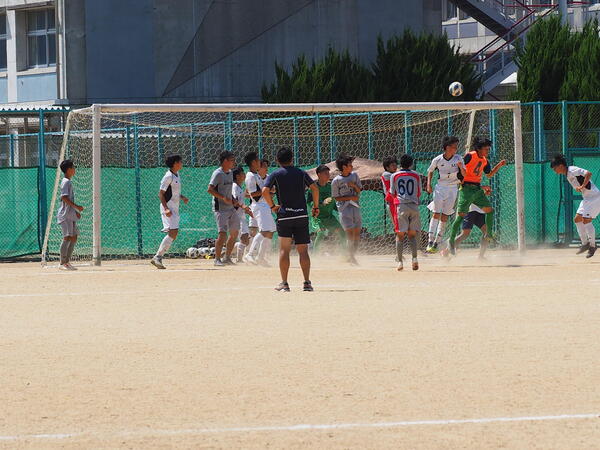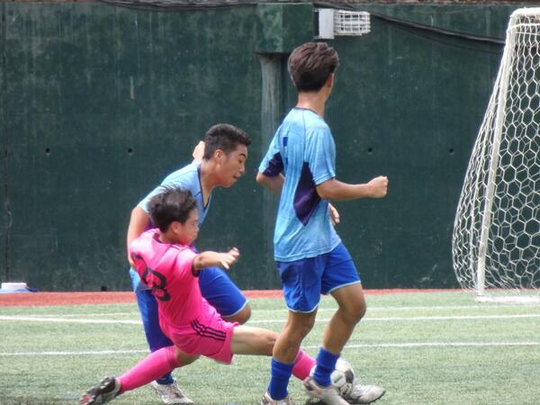 8月12日に1部リーグが実施されました。対戦は日大豊山Bチームでした。昨年度まで地区トップリーグにいたチームで郁文館が当たる前のすべての試合を勝利しており、地区トップに昇格するには勝たなくてはいけない相手でした。前半から積極的にボールを奪いにいき、チャンスを作りだすこともできていましたが、ゴールをなかなか奪うことができずにいると相手CKからこぼれ球を押し込まれて失点を許してしまいました。しかし、すぐにFWが抜け出し振りぬいたシュートが決まり、同点においつき、さらにギアをあげて相手ゴールへと攻めていきました。ゴール前での強さが足りず、追加点が取れずにいたところ相手のクリアがDFとGKの間に落ち飛び出していたGKの頭上を狙った相手のシュートが決まってしまい、2失点目を許してしまう展開になりました。後半はまずは同点に追いつけるようFWも代え、攻めに転じますがゴールを決めることができず、1-2で惜しくも負けてしまいました。