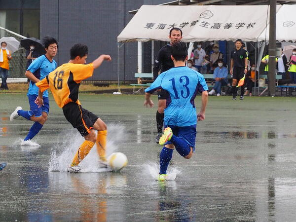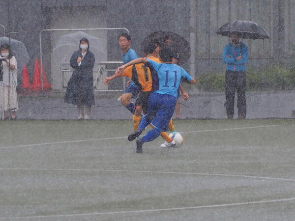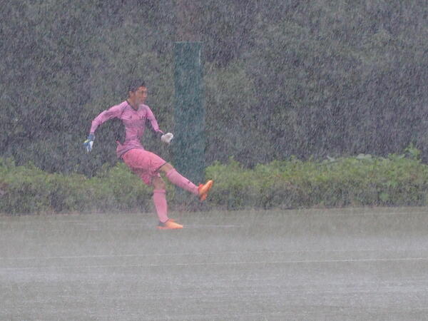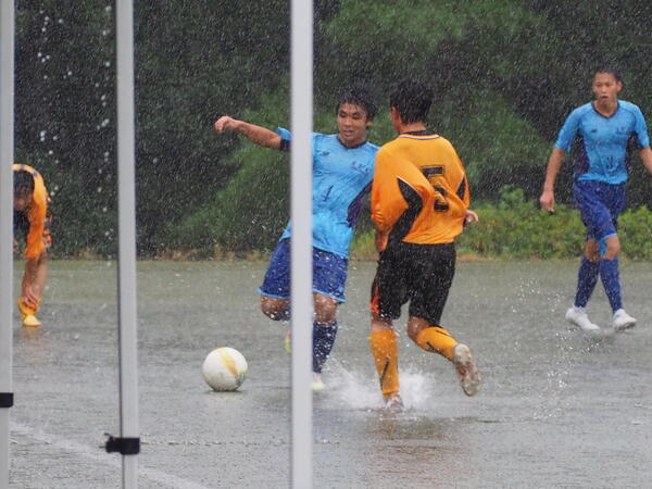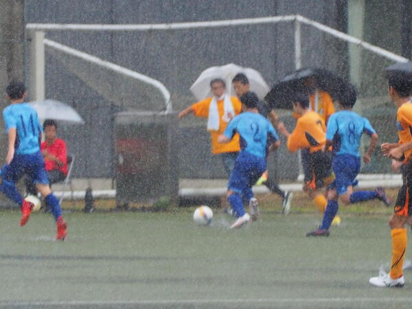 後半は雨が強くなり、グラウンドは水浸しになってボールをドリブルで運ぶことができなくなりました。
