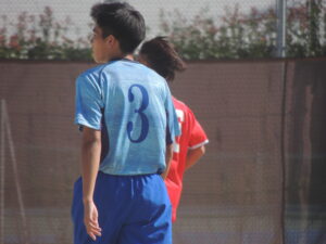1部リーグで上位に入ってくるチームであり、学年が変わっても勝利に貪欲に一生懸命臨んでくる姿勢はとても迫力がありました。前半から相手ゴールへと何度も攻め続けましたが、ゴールを決めることができない状況でした。決めきることができないでいるとカウンターから失点を許してしまいました。そこから崩れることはなく前半を0-1で折り返すとこのまま最後試合を終わらせることはできないと高校3年生が気持ちを一つに後半に臨もうとスイッチを再度入れ直し、後半を迎えました。後半で4得点を奪い、最後は4-2で勝利することができました。