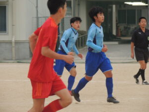 前半残り10分くらいのところで左サイドハーフが縦に突破し、クロスをあげると相手GKがファンブルし、ゴール前に詰めていた選手が押し込み同点。前半は1-1で折り返し、勝負は後半となりました。
