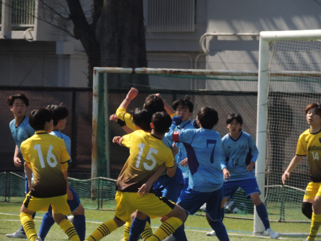 対戦相手の学習院は技術が高く、攻撃は両サイドのスピードある選手を起点に得点力が高いチームで、郁文館はしっかりとした守備から少ないチャンスを得点につなげられるかが勝敗のカギでありました。前半から相手の落ち着いたボールパス回しで組み立てようとしているところを高い位置から組織的に積極的に守備をし、奪ってから相手ゴールへと進める流れは練習してきた通りでした。
