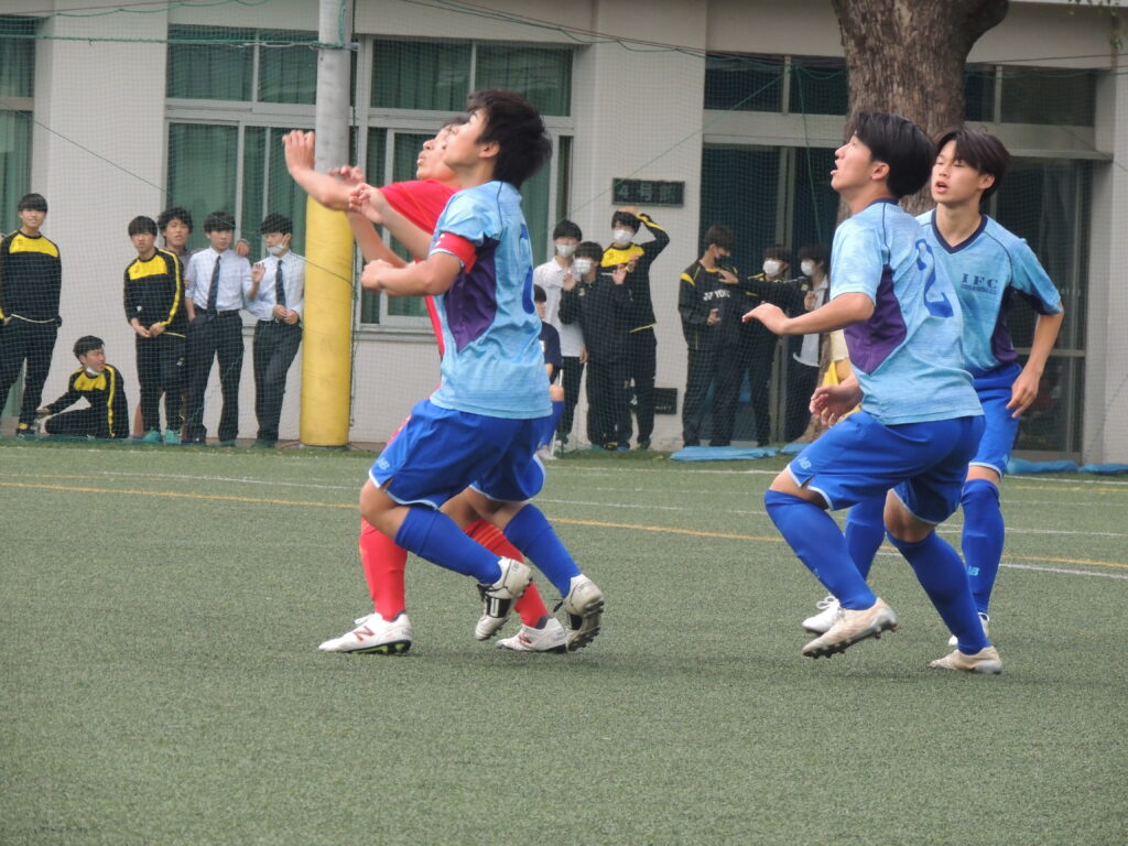 前半は相手の縦に早く長いボールを入れてくる戦術にも対応していましたが、緊張か前日の体育祭の疲れか、