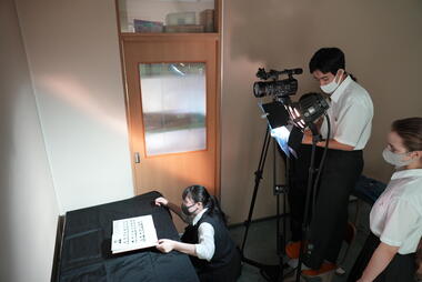 「授業」後は、郁文夢の日のための素材撮影の見学です。 半年後、1年後はあなたたちの番ですよ。