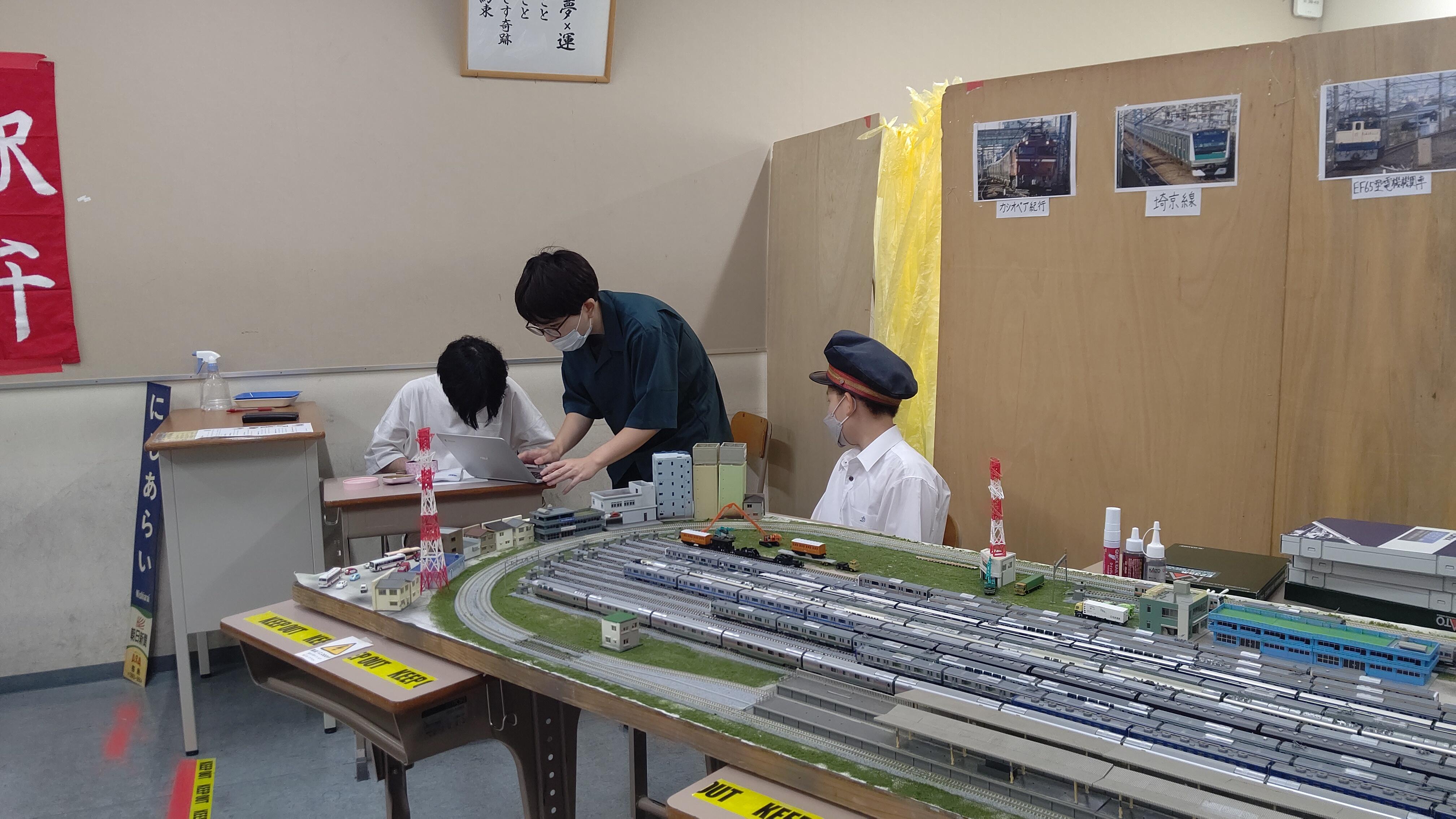 鉄道研究部では、ジオラマ制作発表、車両についての模造紙展示、駅弁販売を実施しました。