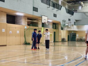 出だしは体育祭の疲れもあってか、声も出ずスタートダッシュが遅れ、相手に1セット先取されてしまいました。人数も自分たちの方が多い中、雰囲気作りに苦しむ結果となり、監督からも叱咤激励され再スタート。