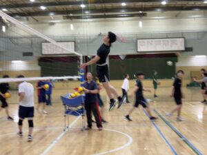 3年生のカッコいいスパイクを見て憧れの念を抱きながら早く上達しようと、ヘトヘトになるほどの基礎練習に弱音を言わずに取り組んでいます。1~2年前までは全員がベンチ入りできた人数でしたが、レギュラー争いは必須です。もっとバレーボール部が強くなっていく姿を楽しみに見ていてください。